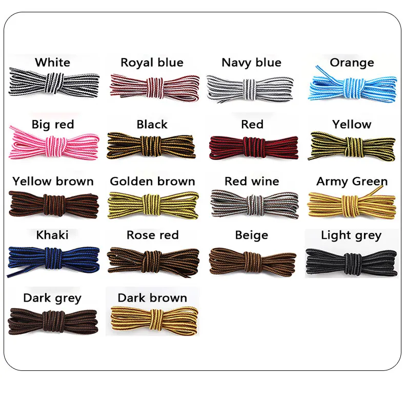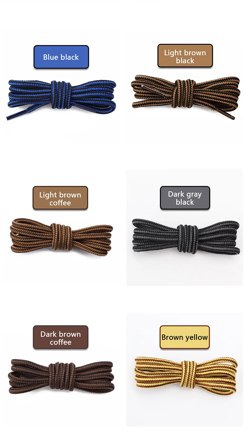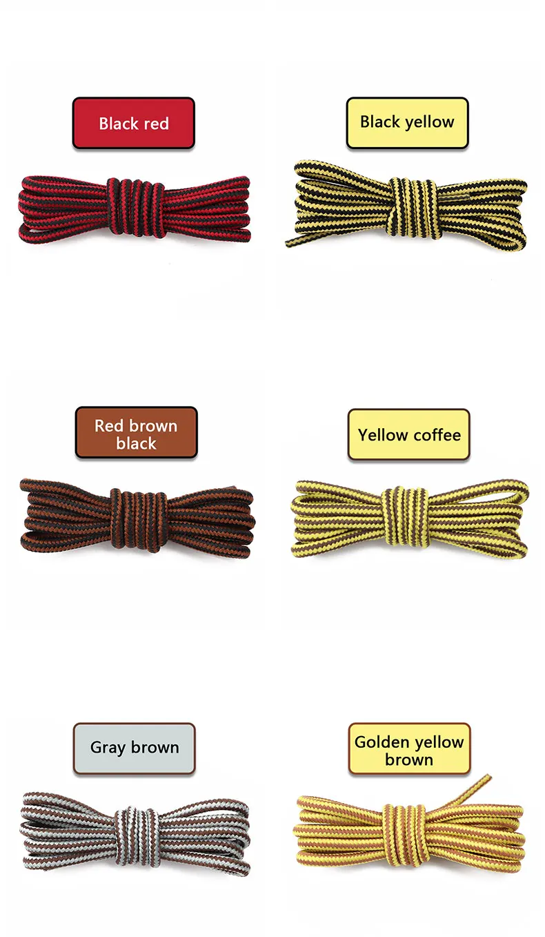 1 Pair Fashion Boots Shoe Laces Round Striped Double Colors Shoelaces Wear-resistant Mountain Climbing Sports Cotton Shoestrings