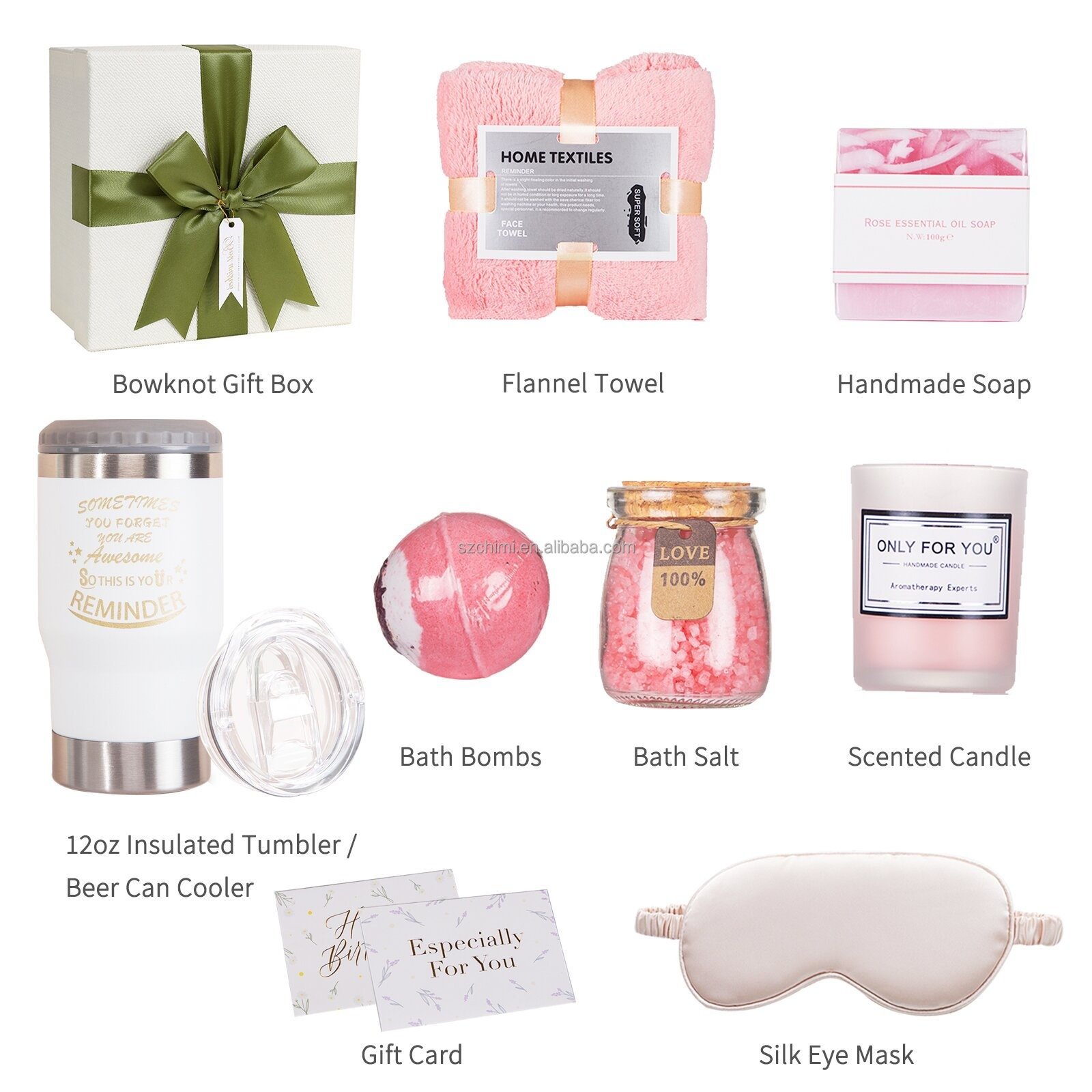 12oz Stainless Steel Tumbler & Home Spa Kit – Birthday Gift Set with Bath Salt and Aromatherapy Candle