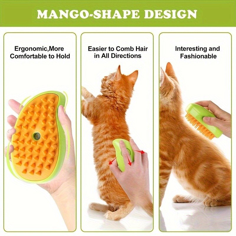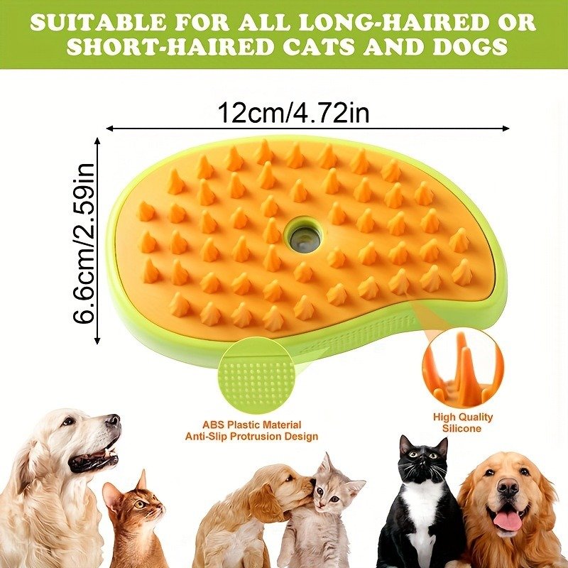 1Pc Electric Steam Pet Brush – Self-Cleaning, Silicone Massage Bristles For Shedding Control & Fur Care – Stylish Fruit Design, Usb/Battery Powered