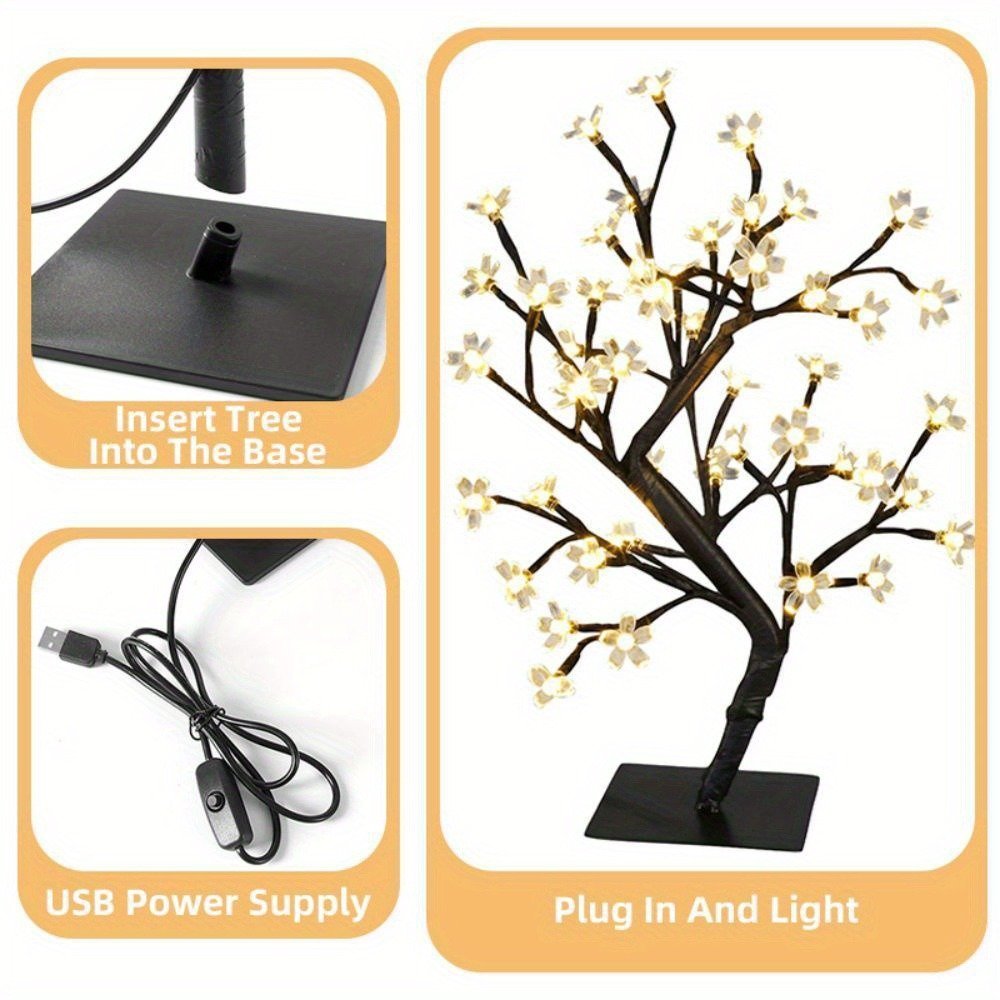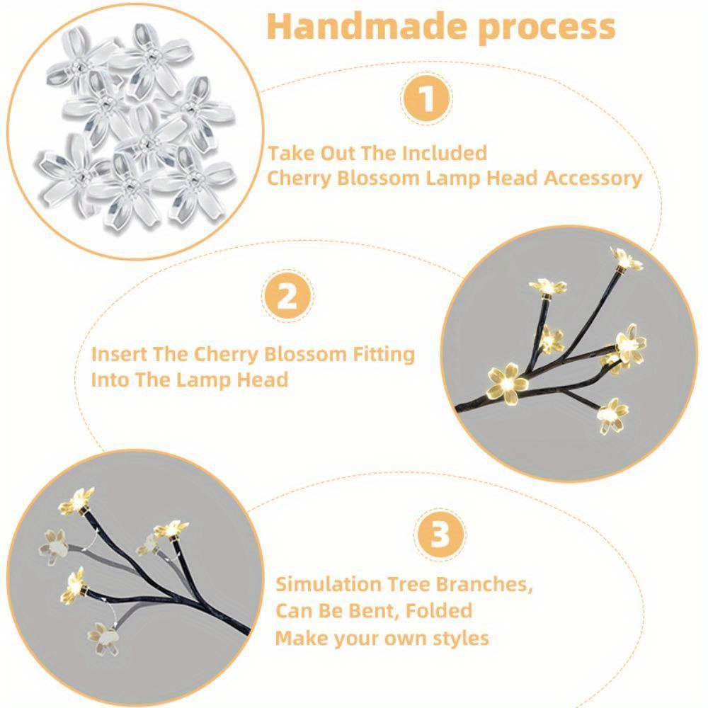 1x Tree Light+Removable Base+Cherry Blossom Lamp Head Accessory