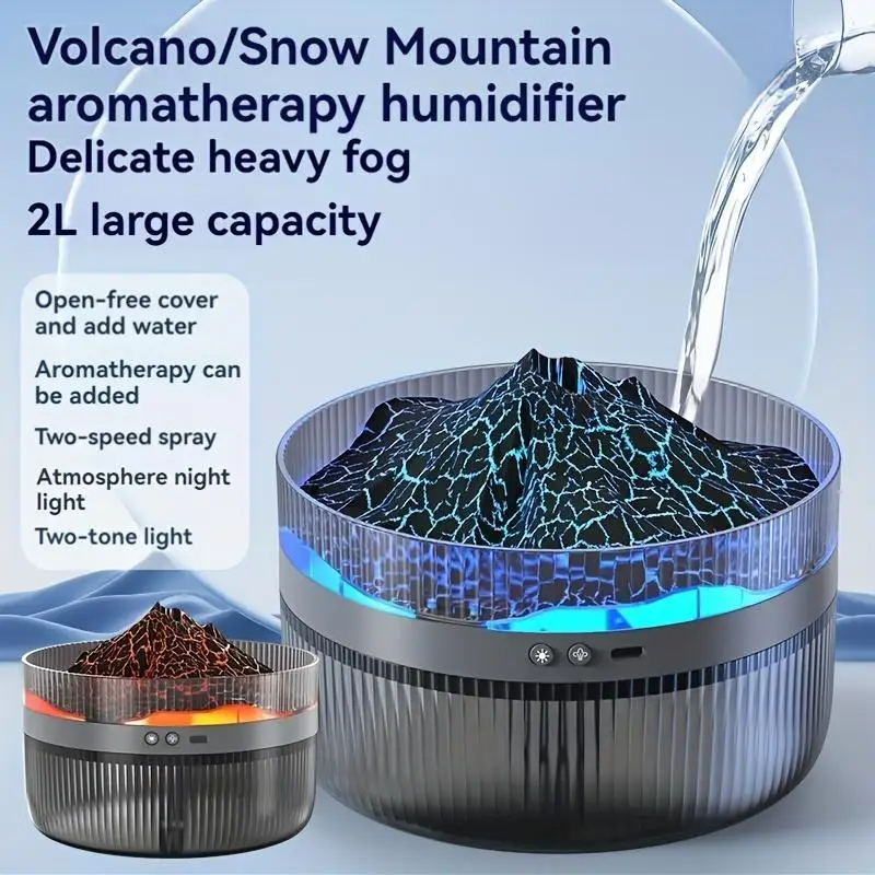 2 Color LED Mood Simulation Volcano Flame Light Humidifier -2L Large Capacity, Aromatherapy Diffuser with Timer, Auto Shutoff, Ultra Quiet Operation, Suitable for Bedroom, Office, Living Room portable oils air quality