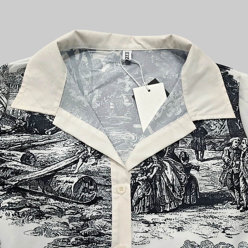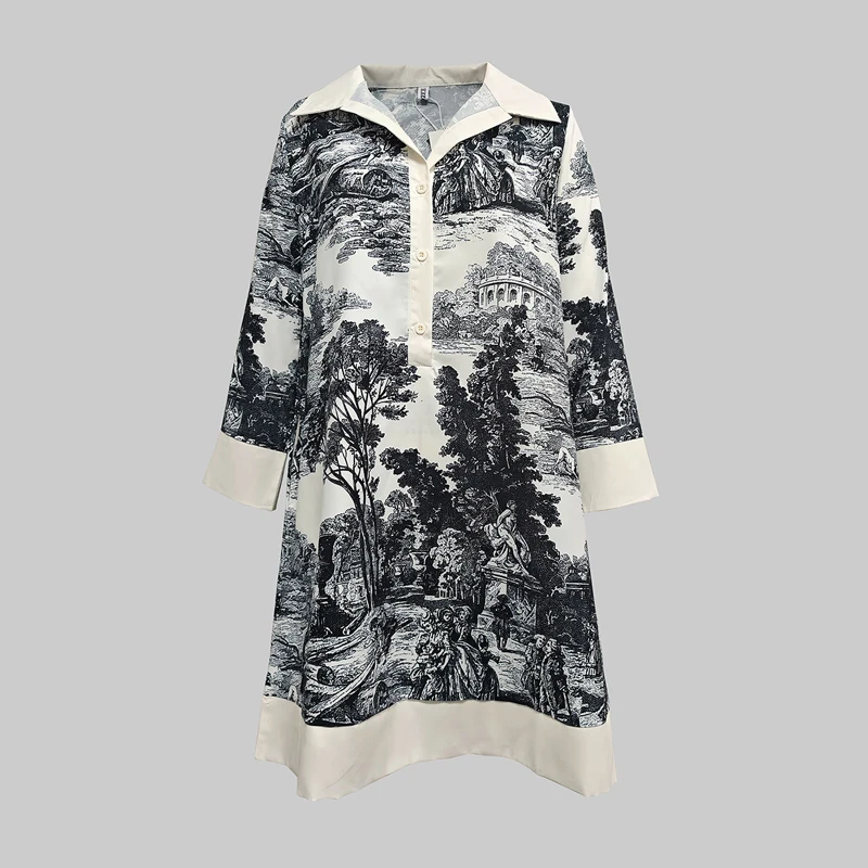 Be the first to review “2025 Spring Summer Women Vintage Printed Party Evening Mini Dresses Long Sleeves Loose Lapel Short Shirts Dress”