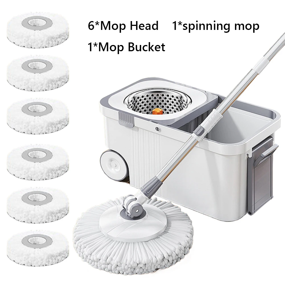 Features: 1. Pet-Friendly Design: The spin mop and bucket set is tailored for households with dogs, making it a perfect gift. Unlike traditional mops that repeatedly clean in dirty water, spreading unpleasant odors like dog urine, our innovative design isolates foul water, ensuring your floors remain truly fresh and clean. 2. Value Pack with Extra Mop Heads: The spin mop bucket includes 6 replacement mop heads, offering great value. With these extra heads, you can extend the lifespan of your mop and always have a clean head ready for your cleaning needs. Say goodbye to the hassle of frequent mop head replacements and enjoy the long-lasting use of our spin mop. 3. Extended Handle for Easy Reach: The 360 spinning floor cleaning system features an extended 61-inch handle, allowing you to easily reach and clean those hard-to-access areas, such as under furniture and in tight corners. Say goodbye to back strain and discomfort with our extended handle design, making cleaning a breeze. 4. Versatile Cleaning for All Floor Types: The household cleaning automatic spin mop is equipped with a wringer bucket and is versatile for use on various floor types. Whether you have hardwood, tile, laminate, or any other hard floor surface, our spin mop delivers excellent cleaning results. Its gentle yet effective cleaning action ensures your floors remain pristine and undamaged, regardless of the surface type. 5. Household Essential: The rotary mop set is an indispensable tool for maintaining a clean and healthy home. Its efficient design and high-quality materials make it a reliable choice for everyday cleaning, ensuring your living space stays spotless and inviting.