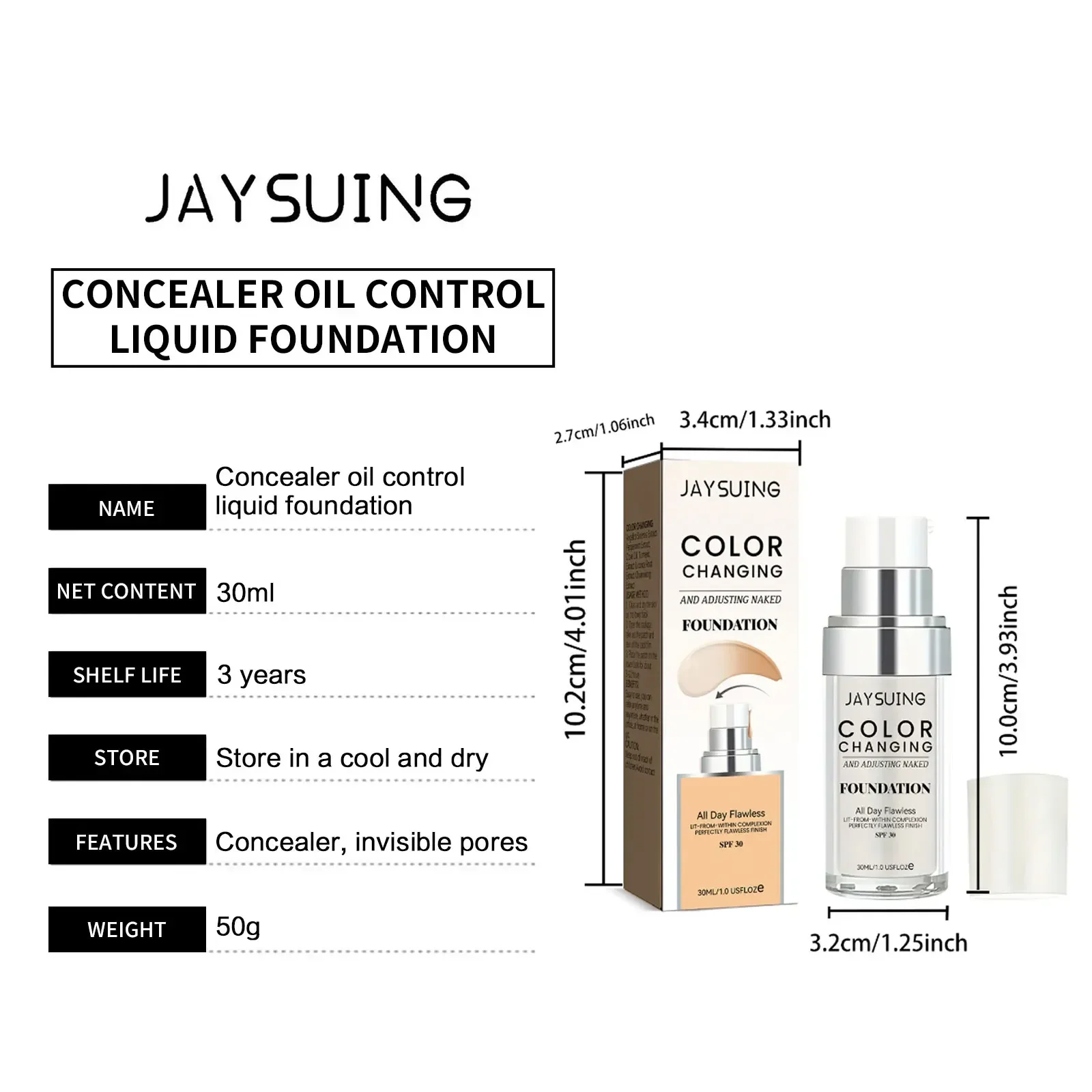●Function: Smooths the Skin / Cover Facial Blemishes / Hides Pores / Absorbs Sweat & Sebum / Brighten Skin Color / Whitening & Moisturizing / Moisturizes Fine Lines / Cover Dark Circles / Face Contour More Three-Dimensional / Waterproof & Sweatproof●Content: 30ml