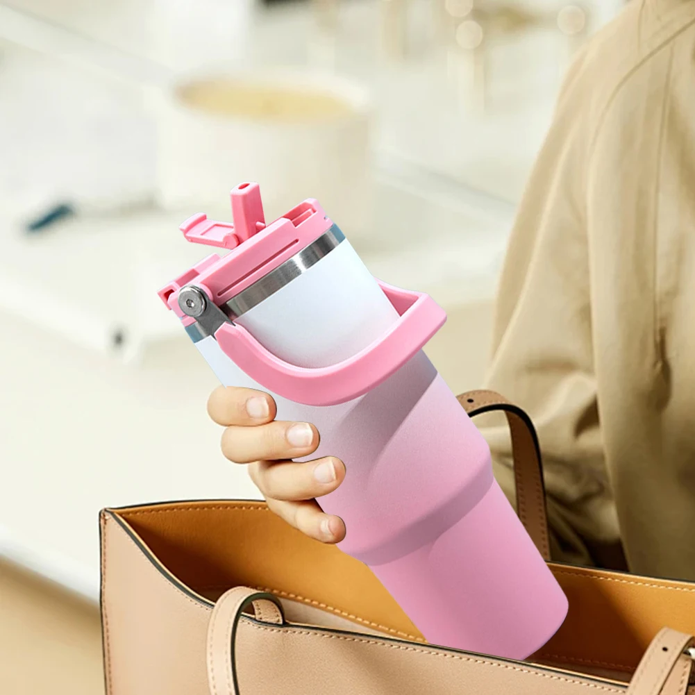 5. Travel-Ready: With its portable design, this gradient vacuum flask with a handle is easy to carry, fitting into backpacks or tote bags, perfect for outdoor activities, travel, or office environments.