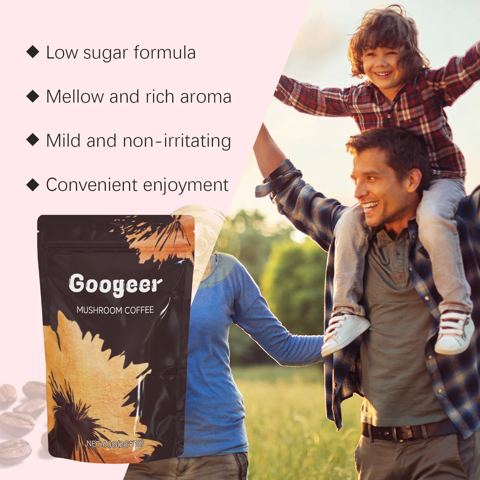 60g Googeer Mushroom Coffee Enhance Cognition Reduce Stress Anxiety Provide Energy Endurance Natural Plants Body Care Coffee