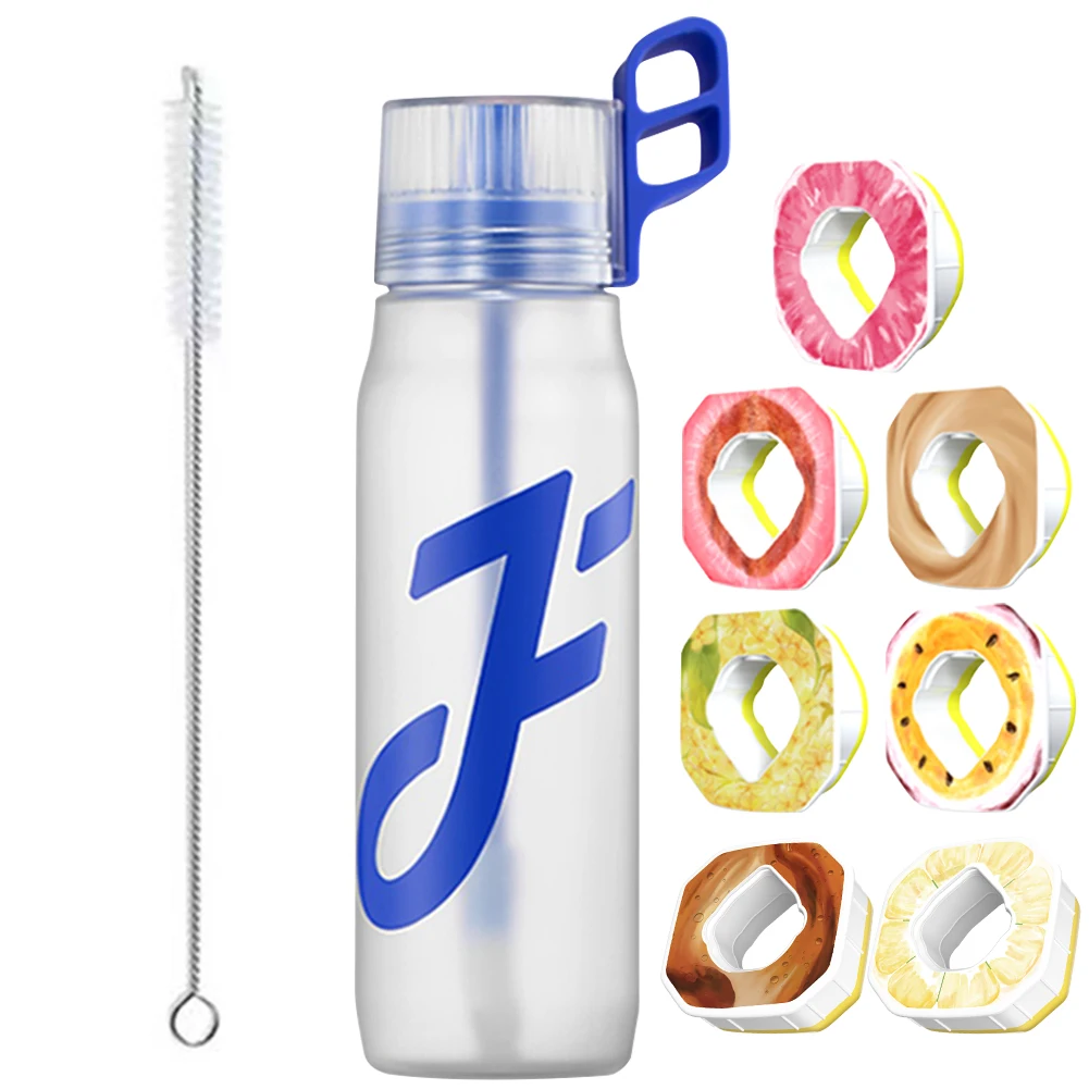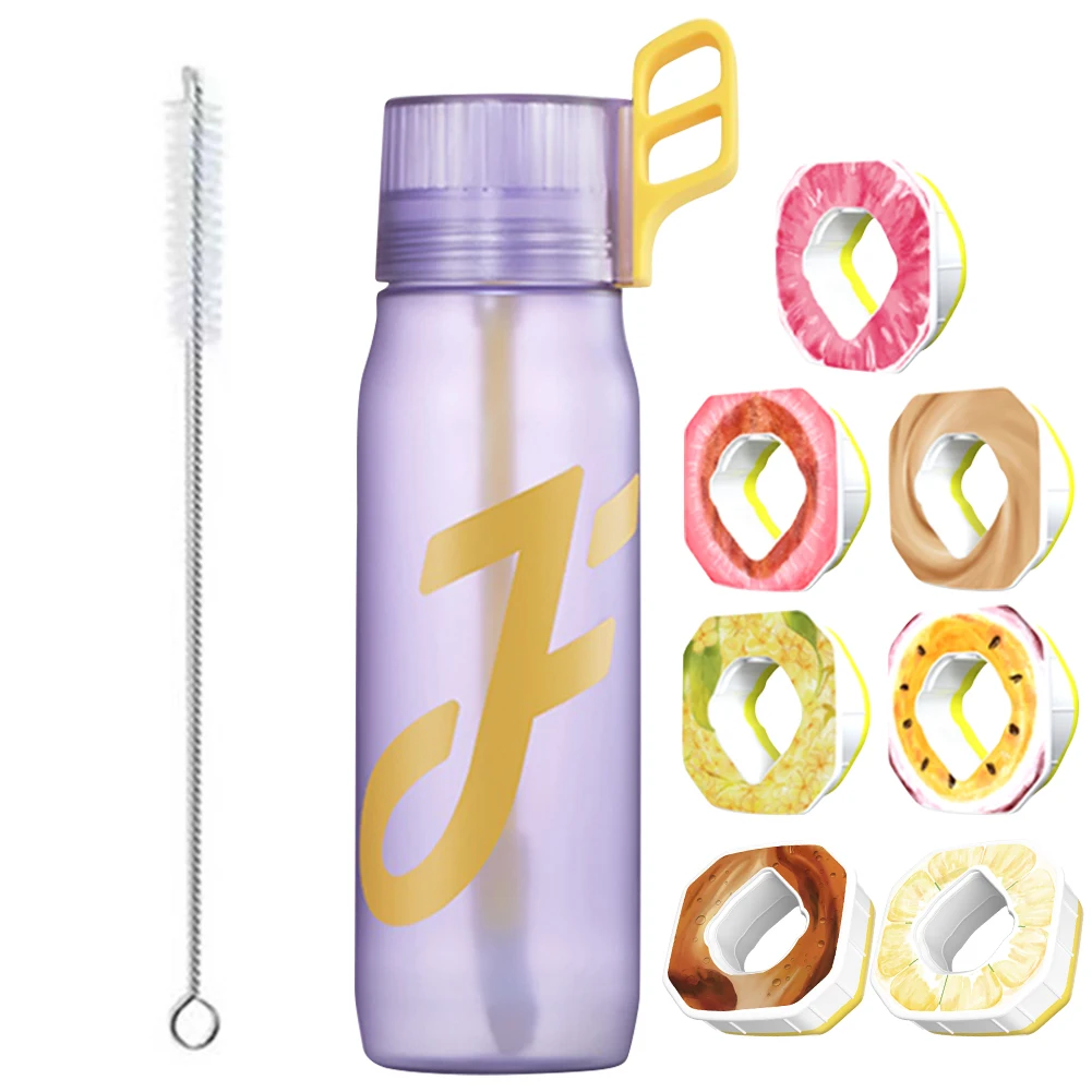 650 ML Water Bottle Gym Fitness Bottle Drink More Water with 1/5/7Pcs Flavour Pod BPA-Free Sports Bottle Reusable Cup Gym Water Bottles with Handle Straw Brush for Outdoor School Office