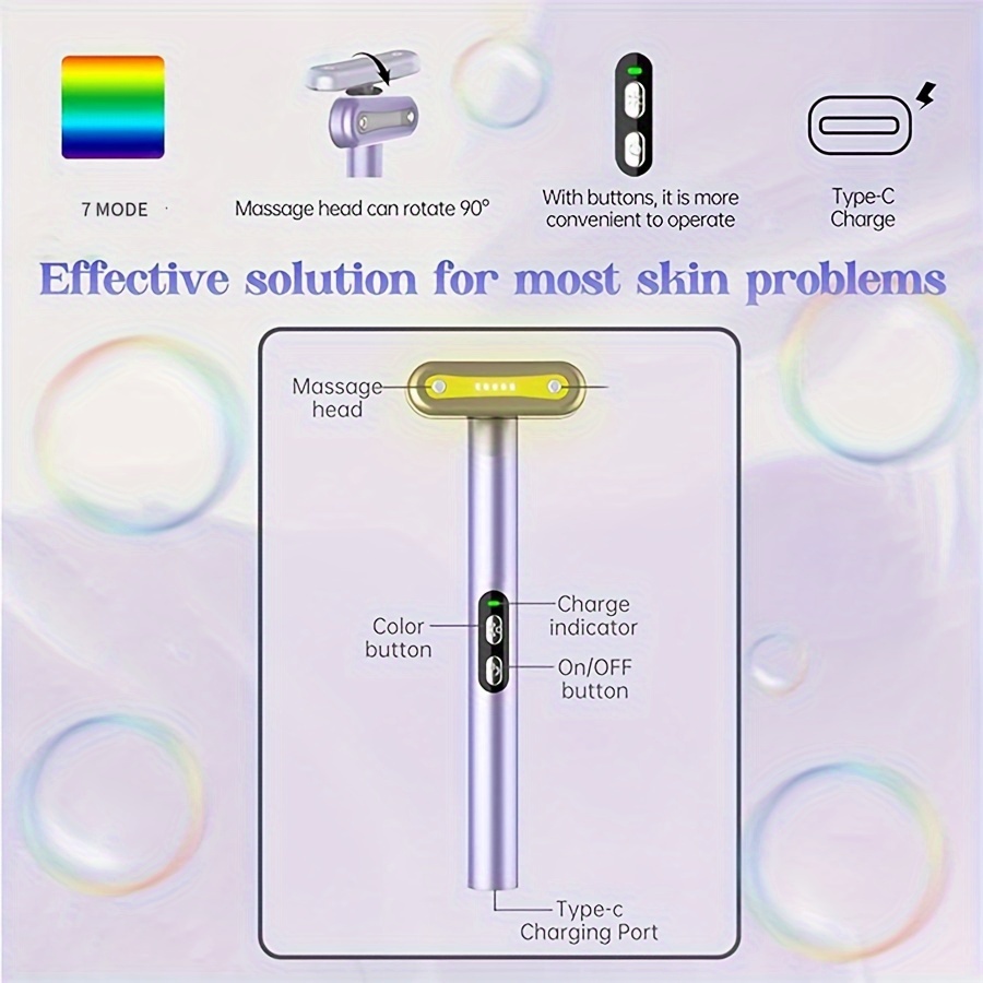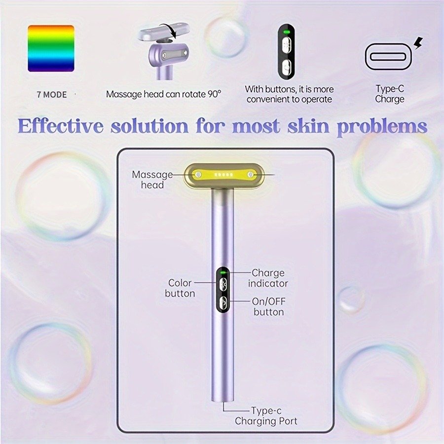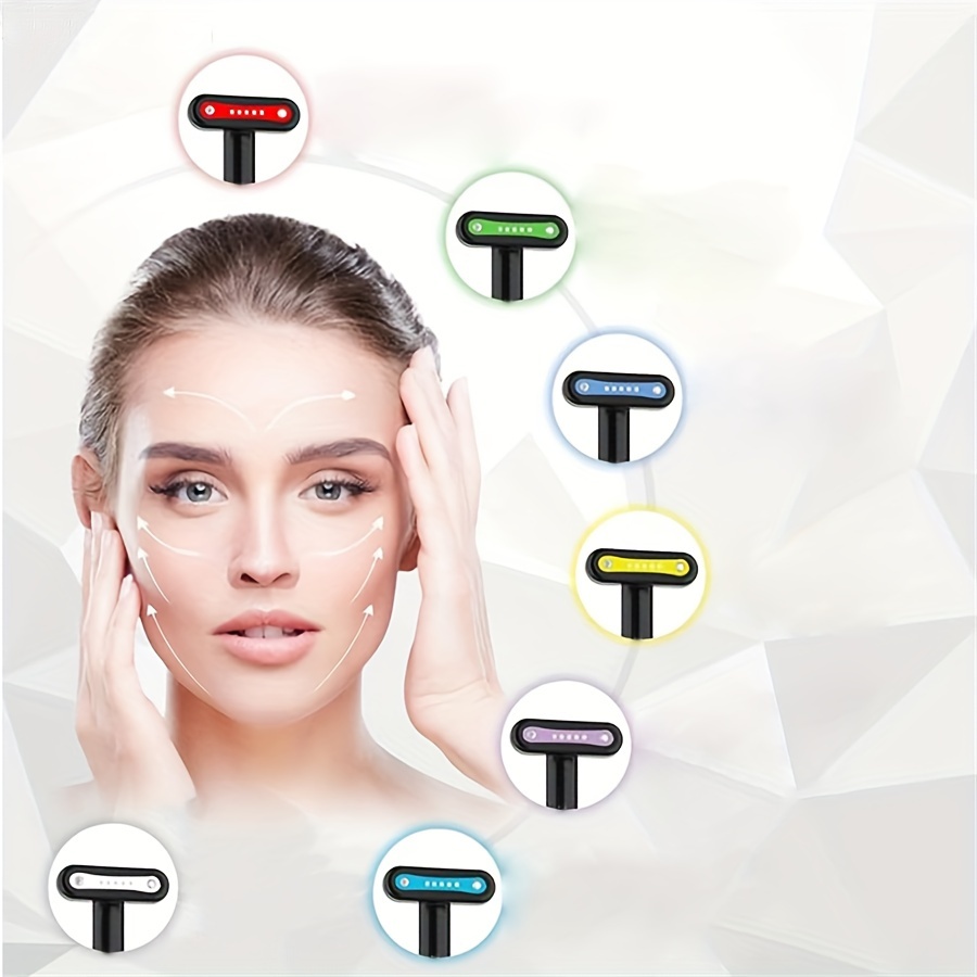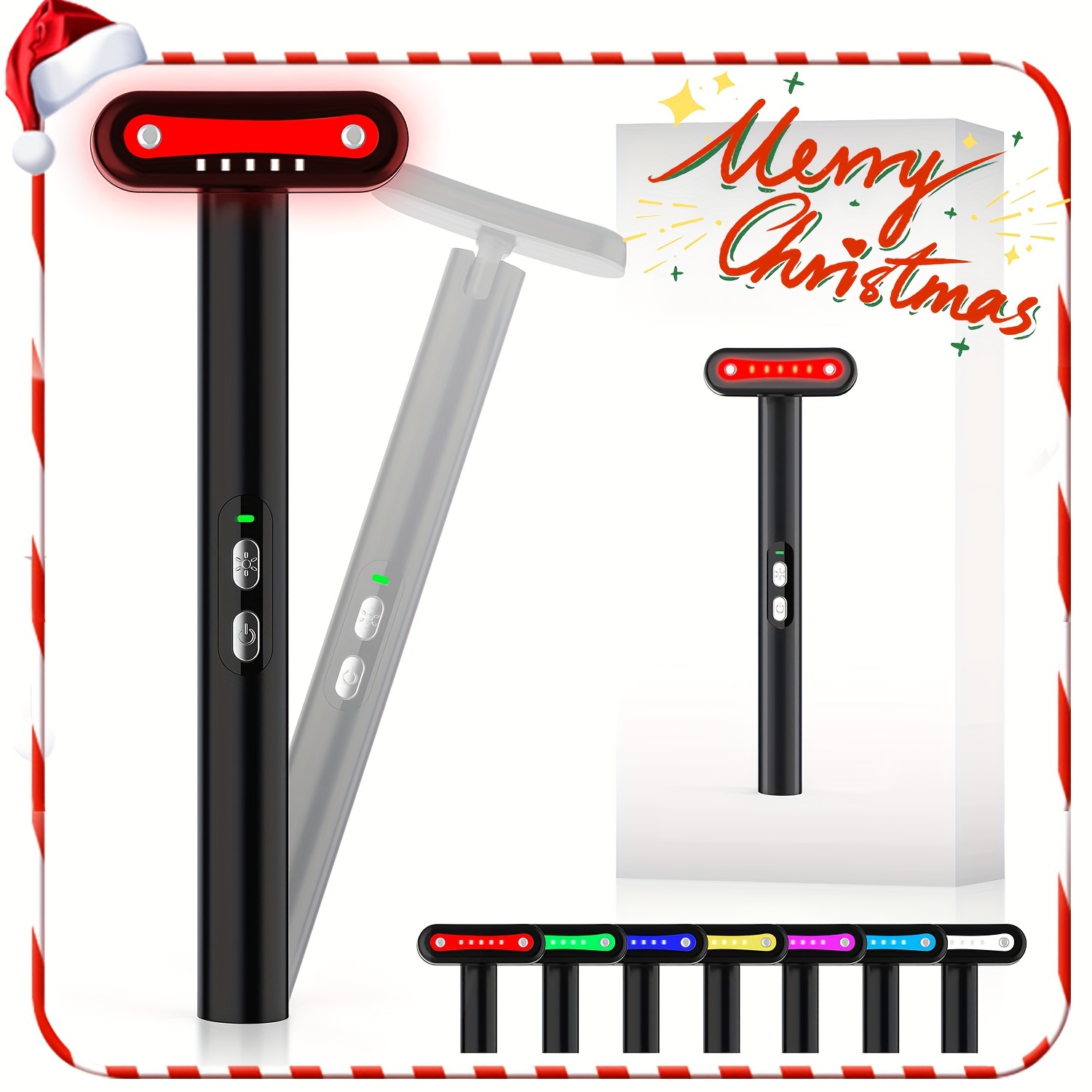 7 In 1 Facial Massage Handheld Wand, Face And Neck Simple Skincare Tool, LED Beauty Wand 7 Color Red Light Eye Massager Skincare Tool Valentine’s Day Gift, Purple, Black