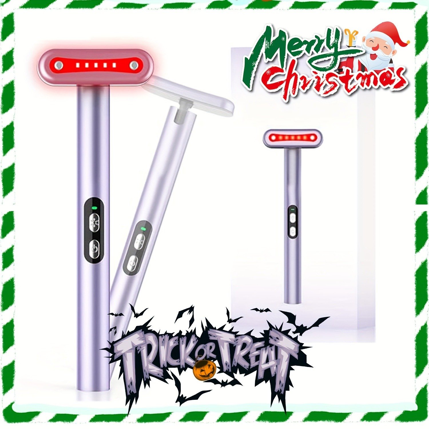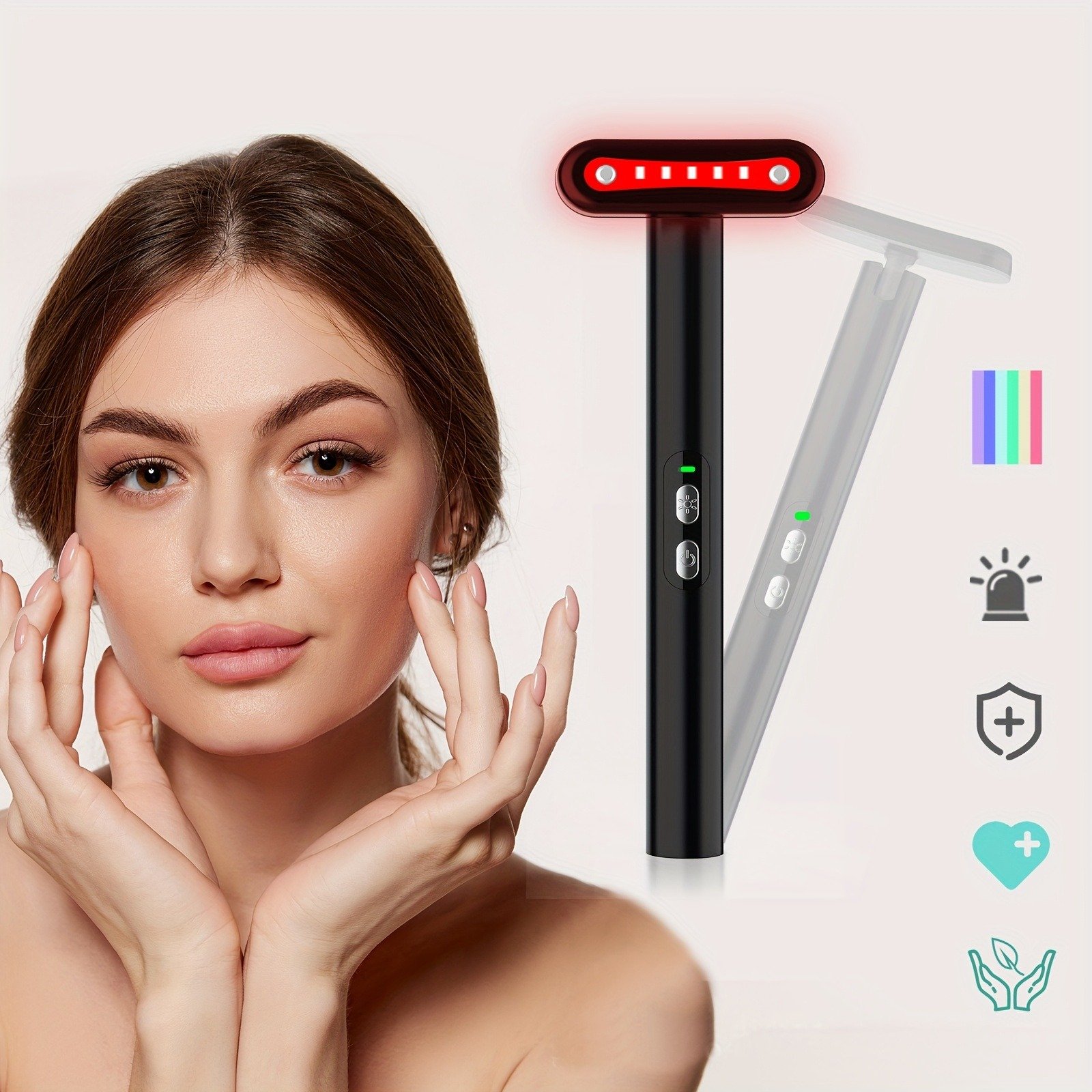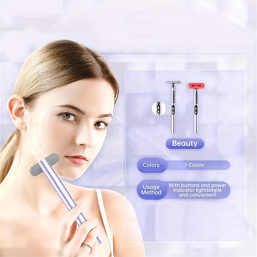7 In 1 Facial Massage Handheld Wand, Face And Neck Simple Skincare Tool, LED Beauty Wand 7 Color Red Light Eye Massager Skincare Tool Valentine’s Day Gift, Purple, Black