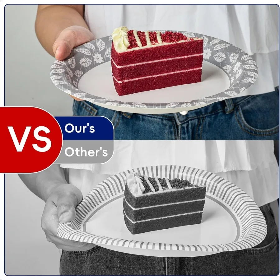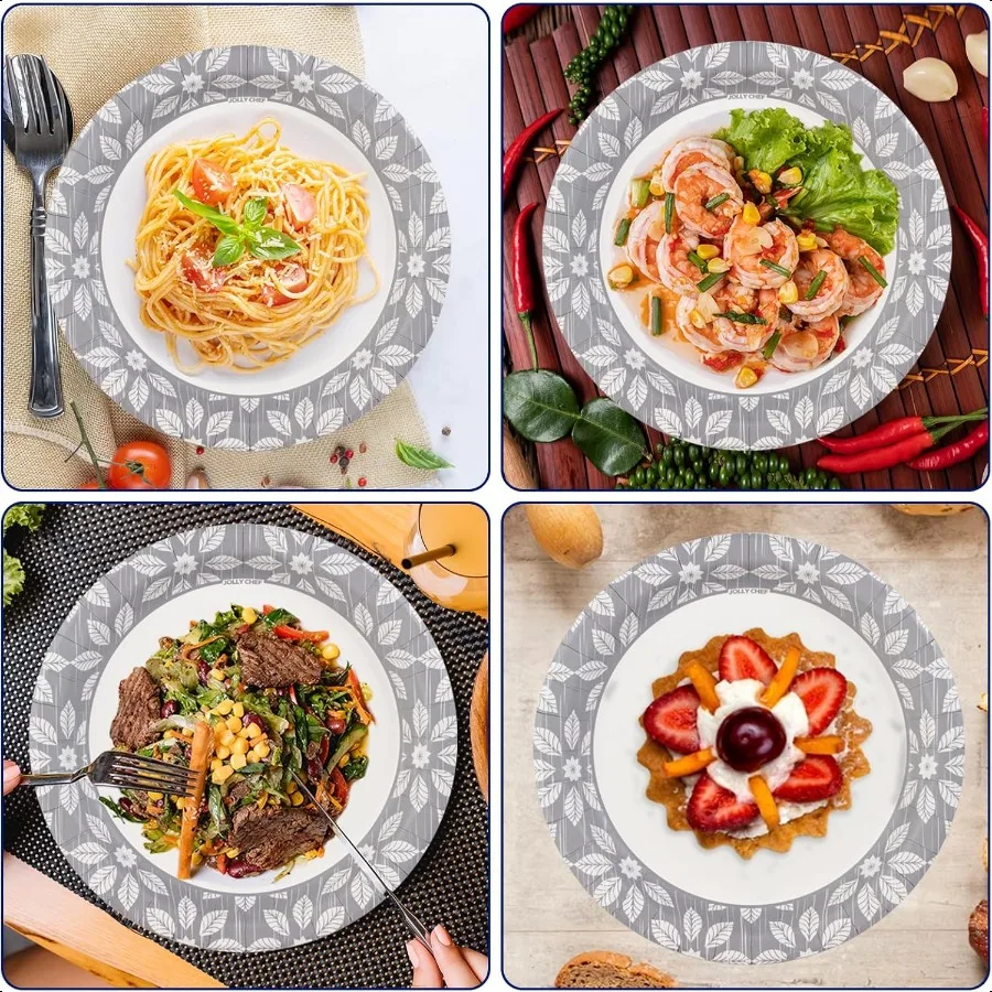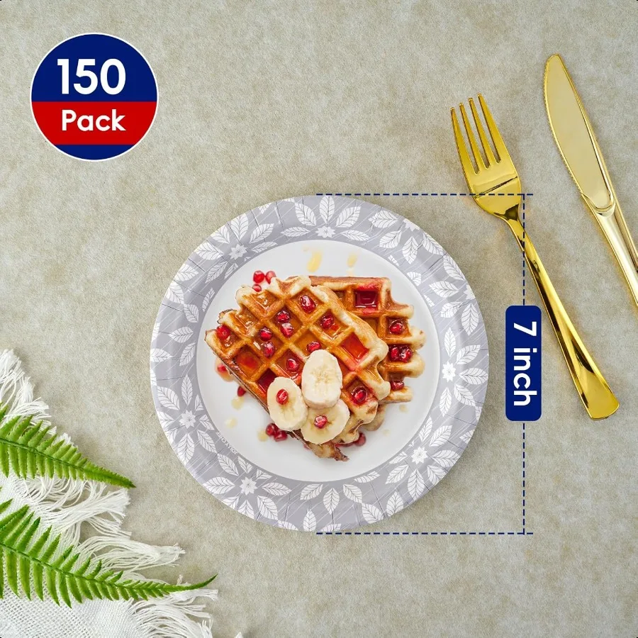 7 inch Disposable Paper Plates 150 Pack Heavy Duty Printed Dessert Plates for Everyday Use Soak Proof Cut Proof