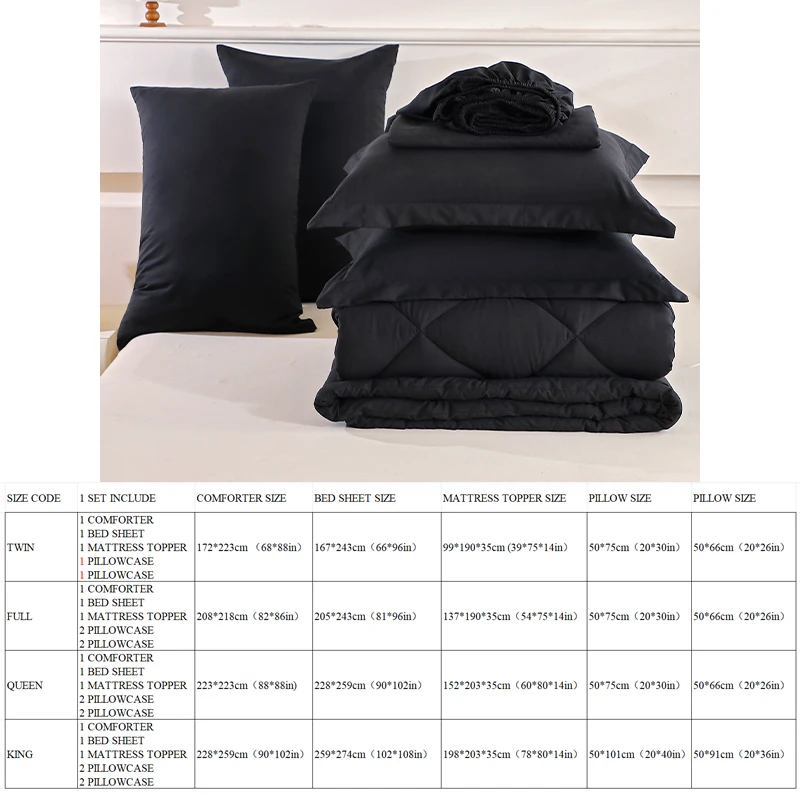 Packing: 1 Quilt+1 flat sheet+1 mattress topper+pillowcase