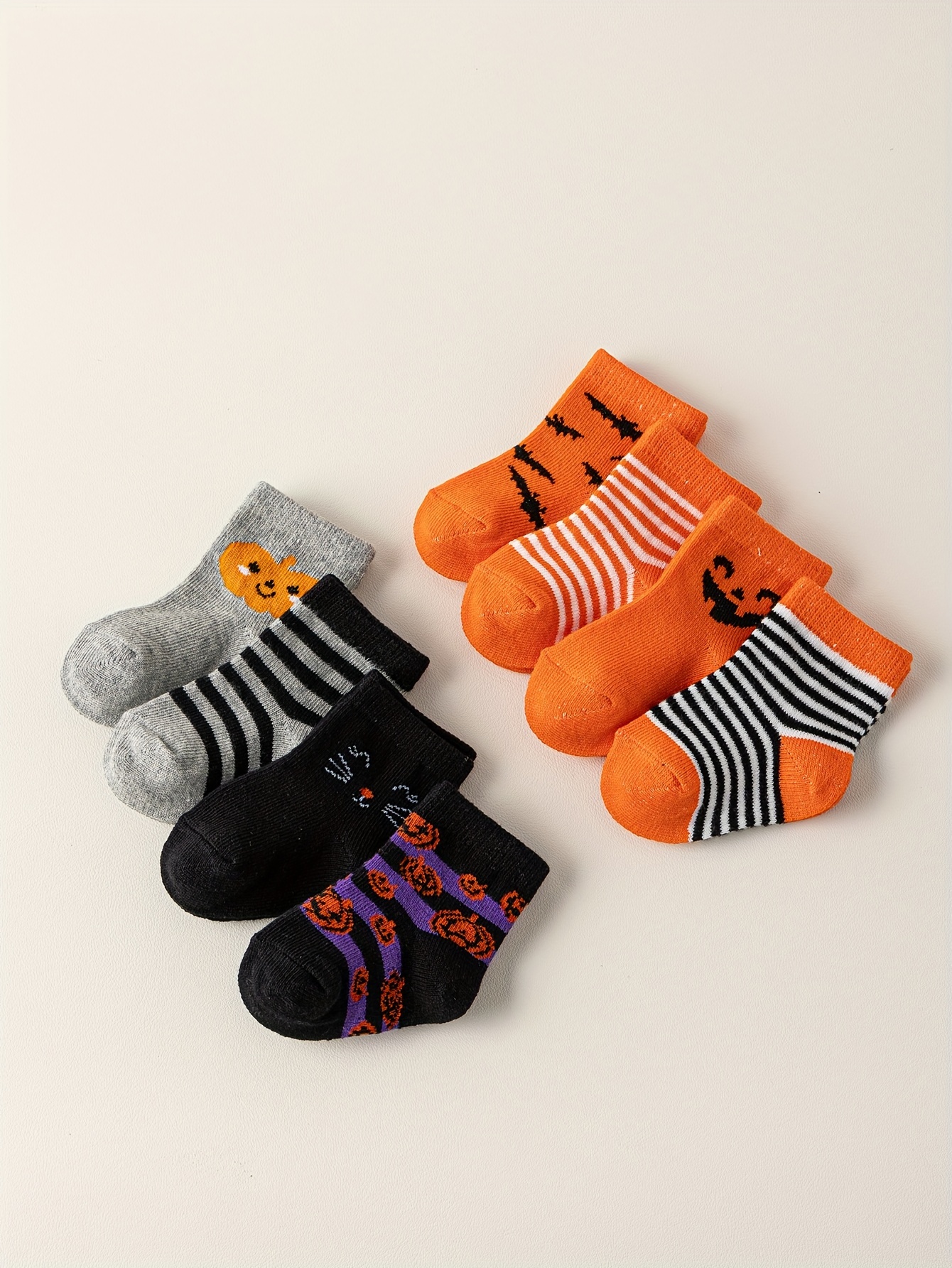 8 Pairs Of Comfortable And Stylish Wrinkle-resistant Halloween Baby Socks Made Of Cotton Blend.