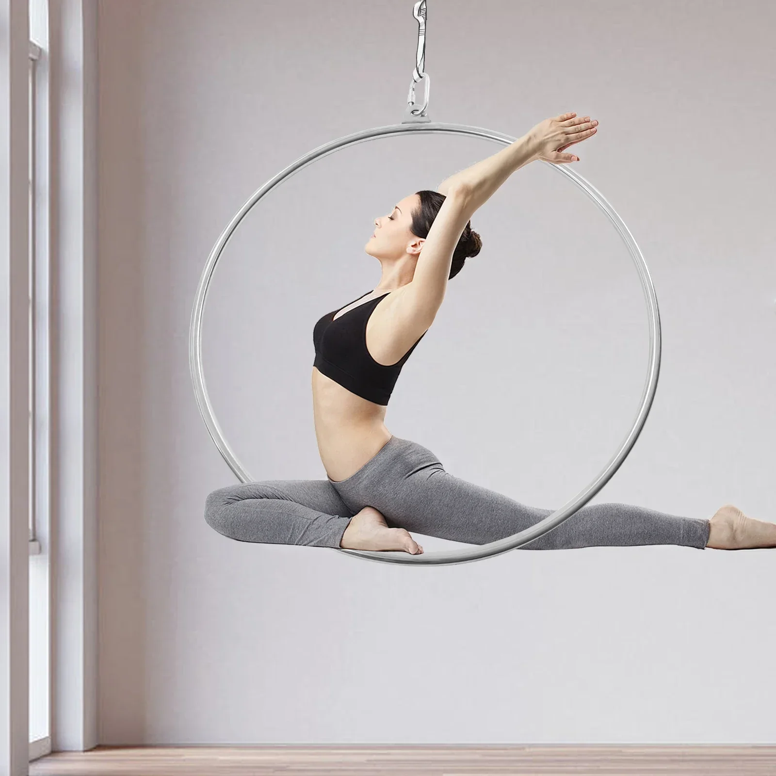 Sturdy and Durable: The aerial hoop is made of corrosion-resistant, strength, and rigidity 210 stainless steel, which is very strong and durable.