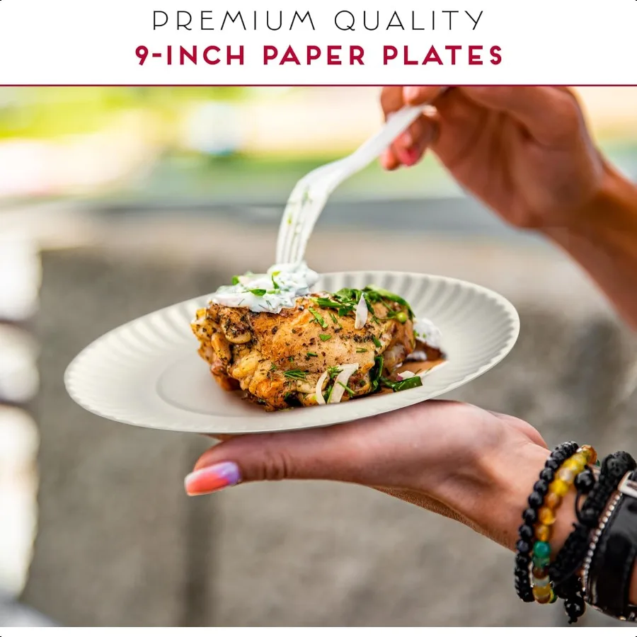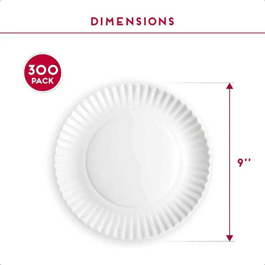 9Inch Disposable Paper Plates 300 Count Bulk Pack of Uncoated Paper Plates for Everyday Use Dinnerware for Meals Parties And Pi
