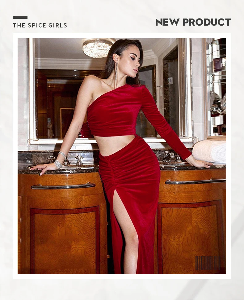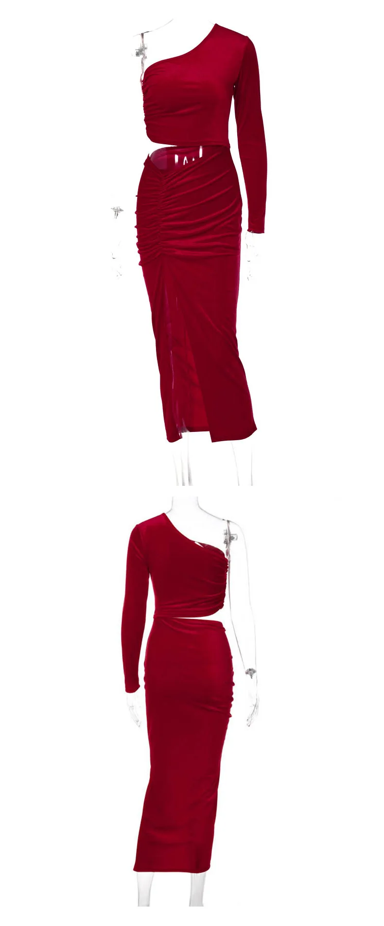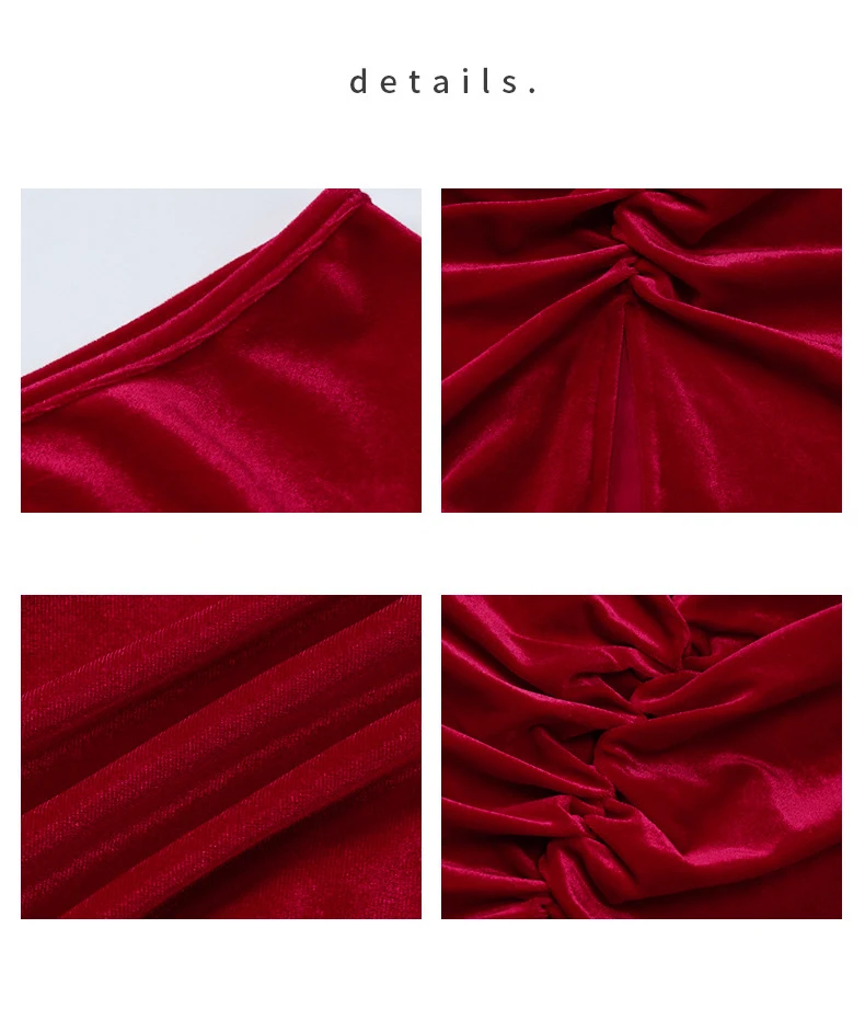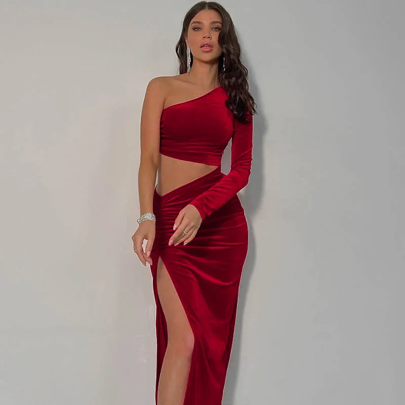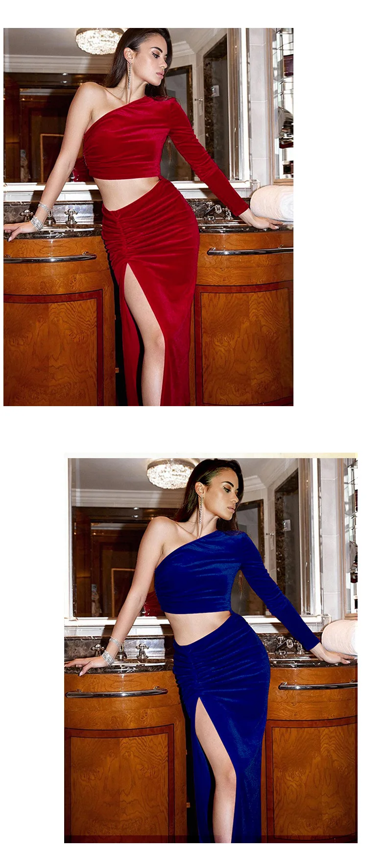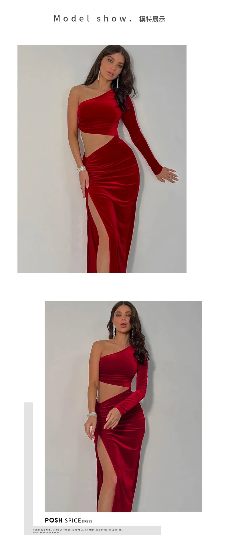 Fashion Elegant Slim Evening Dress Women Sexy Party Velvet Diagonal Shoulder Dress