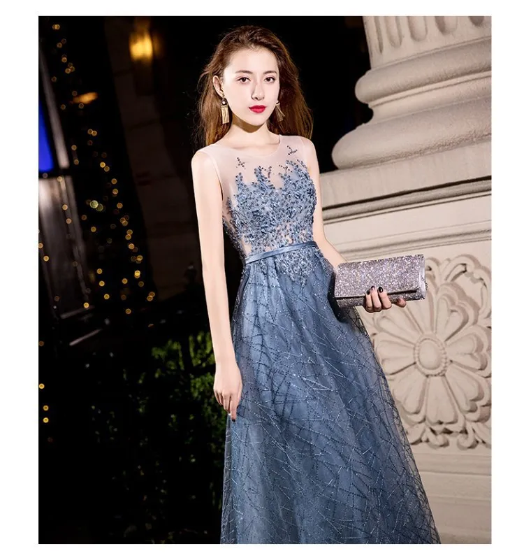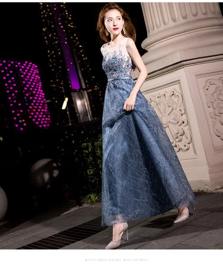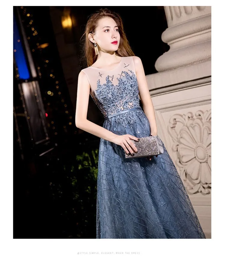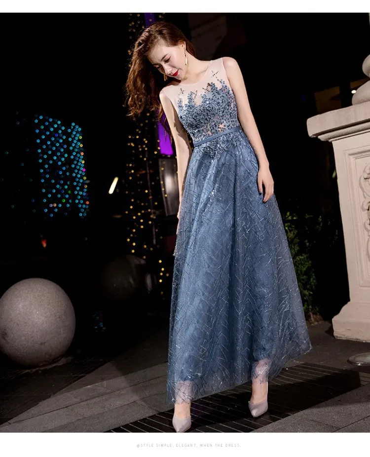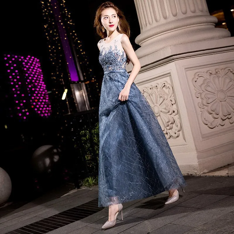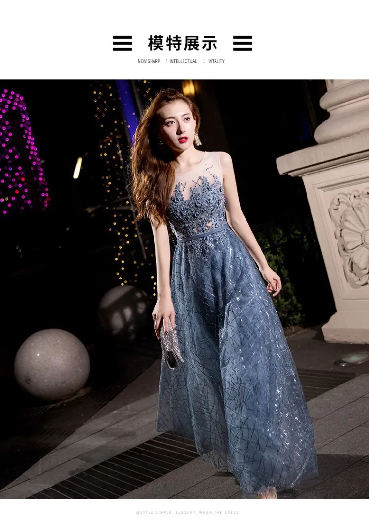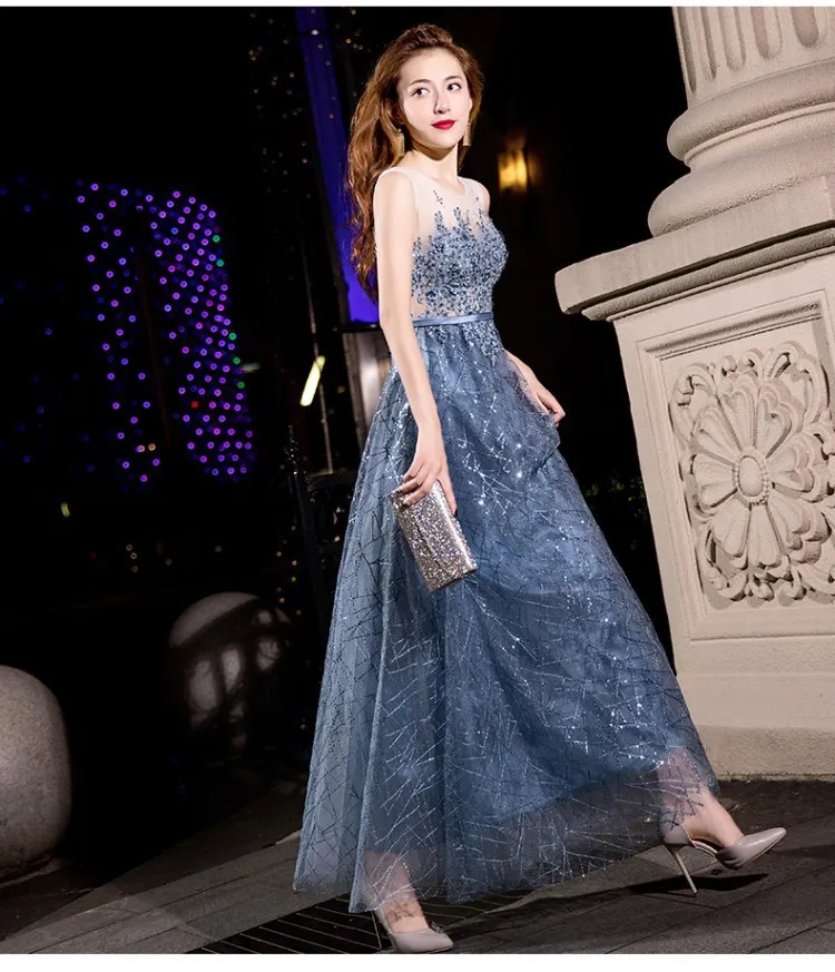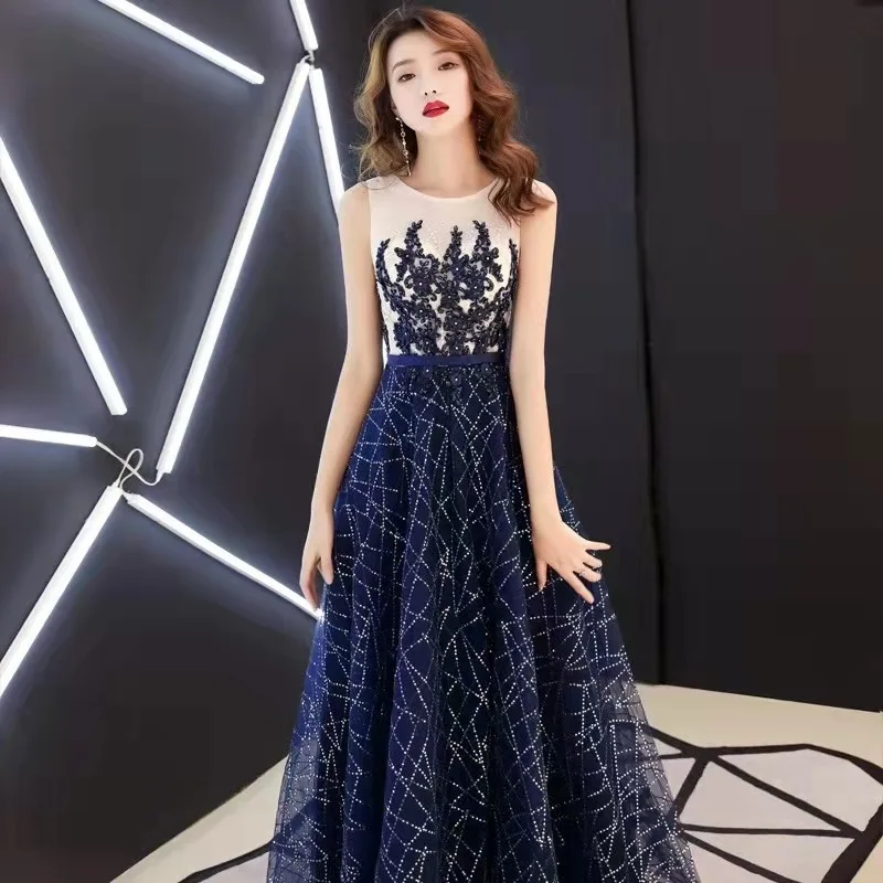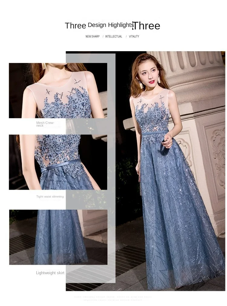 2024 Summer Annual Meeting Dignified Atmosphere Long Thin Blue Fairy Hosting Banquet Evening Dress Women