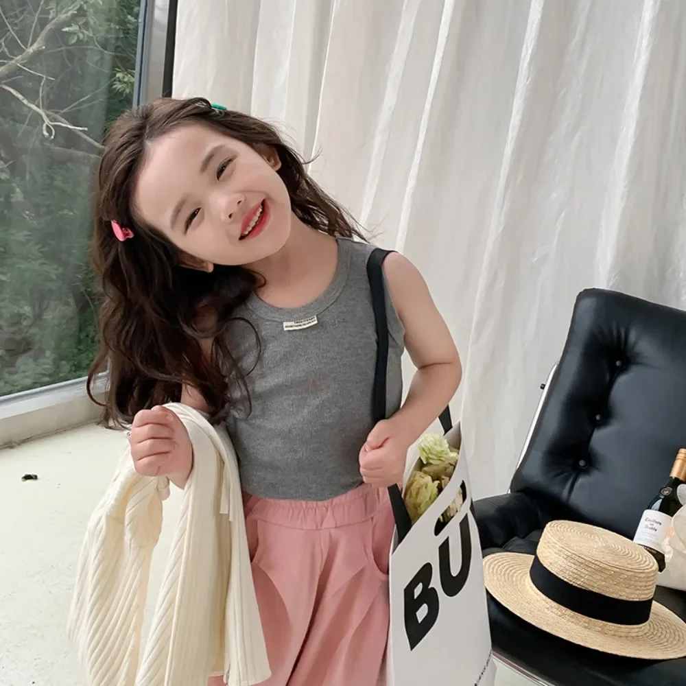 Children Vests T-shirts Summer Boys Girls Cotton Sports Tops Waistcoat Pure Color Casual Kids Vest