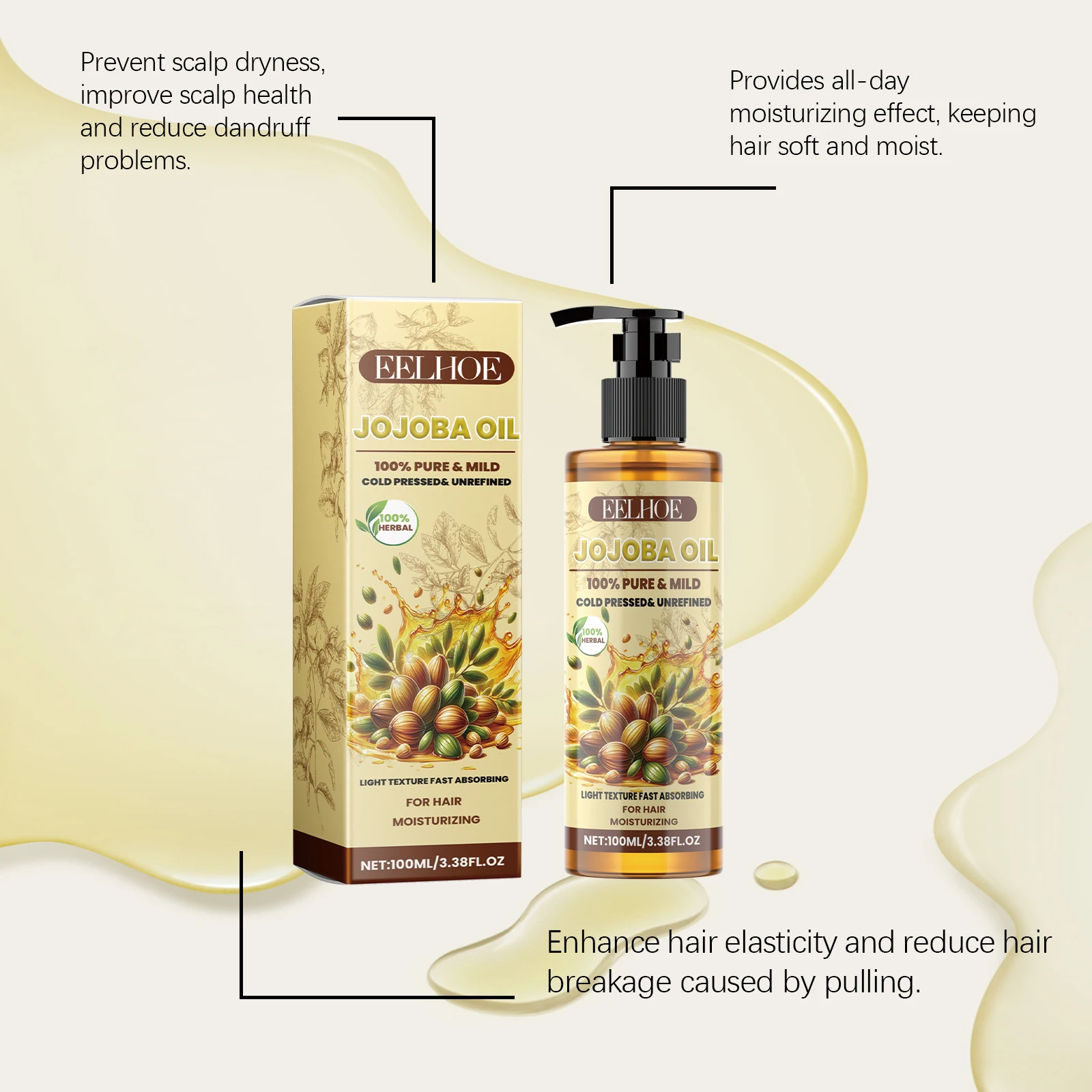 1. Deep nourishing jojoba essential oil deeply nourishes hair roots, repairs damaged hair, and makes hair naturally shiny. Restore the natural luster and smoothness of hair, making it healthy and shiny.