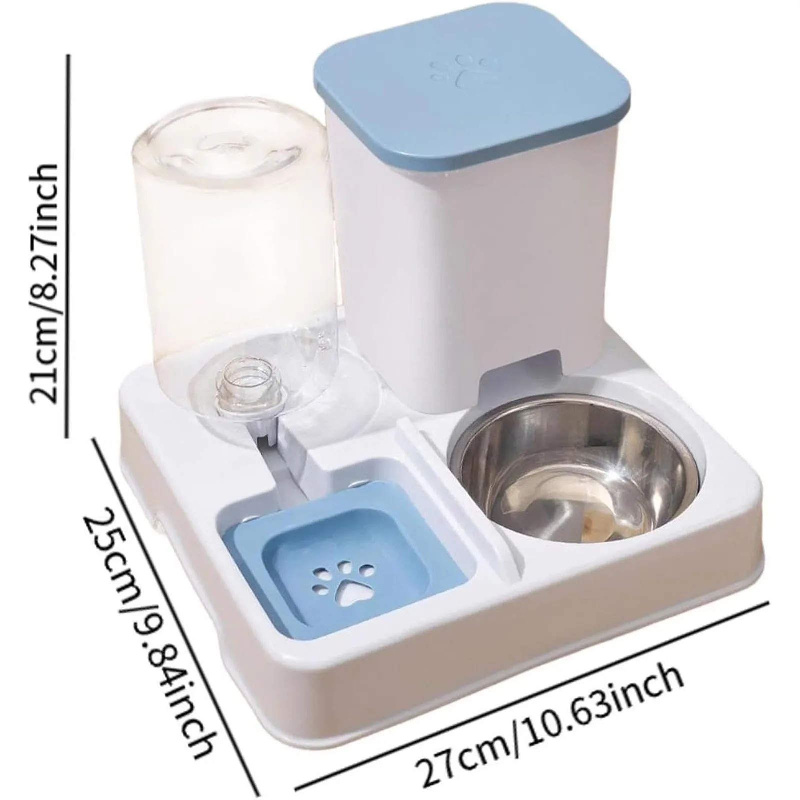 - Wet & Dry Separation: automatic dispenser and cat feeder in 2 in 1, 1L large water bucket and 2L enlarged .storage bucket. Raised guardrail to prevent external.