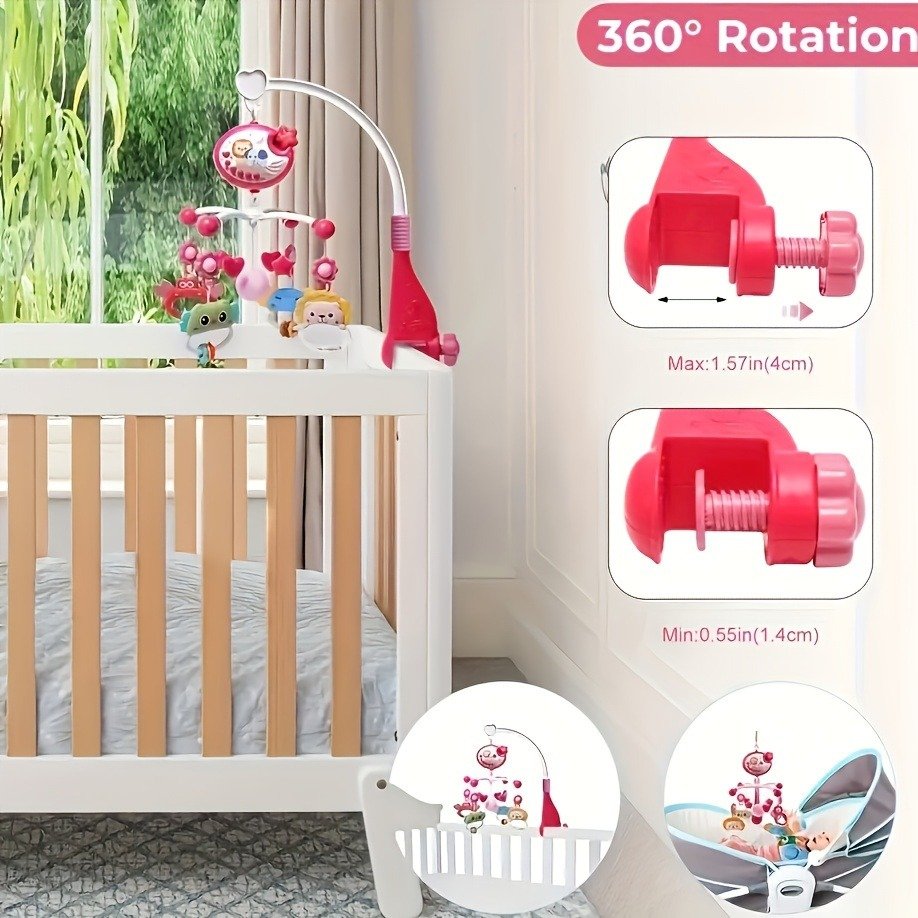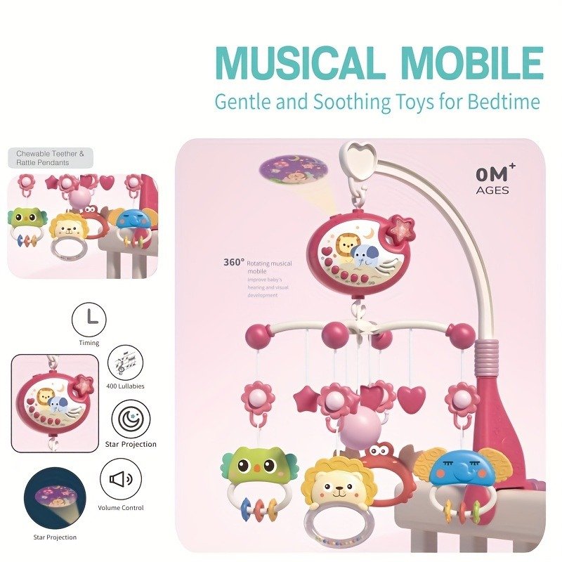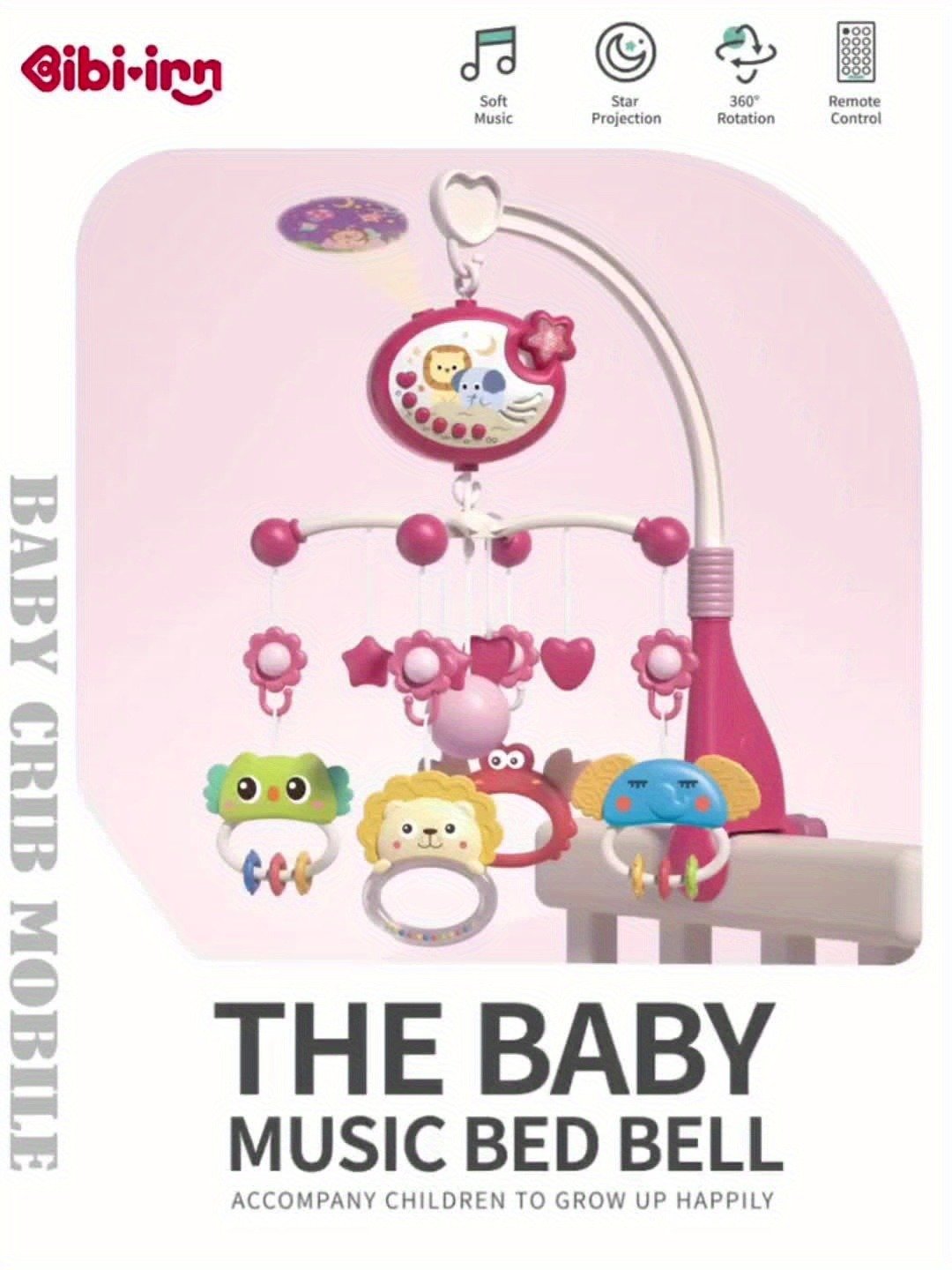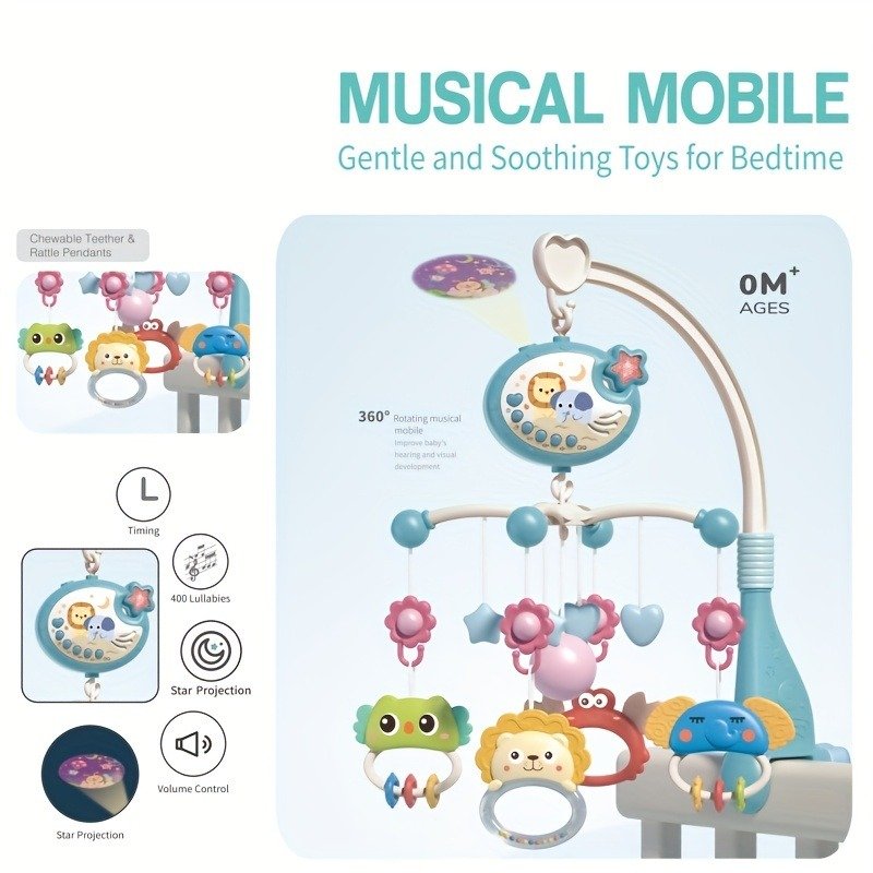 Baby Musical Crib Mobile With Night Lights And Relaxing Music, Hanging Rotating Animals Rattles, Stars Projection, Remote Control, For Boy Girl Newborn Baby Toys