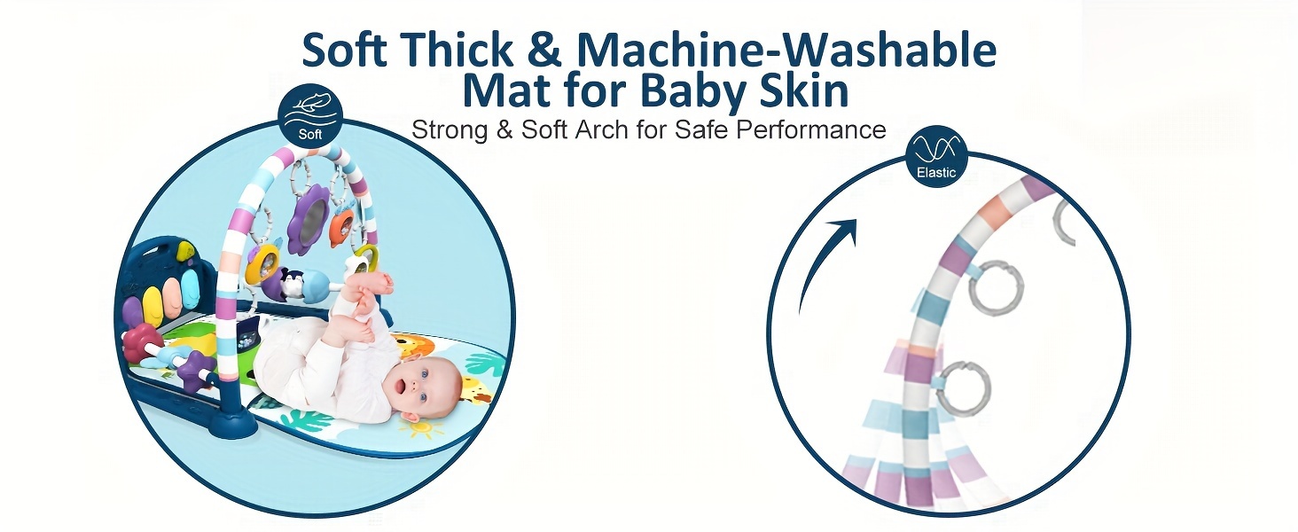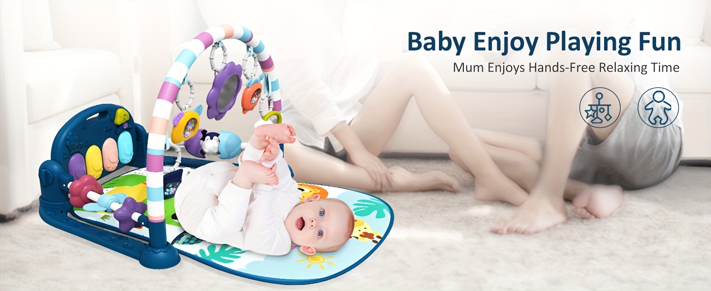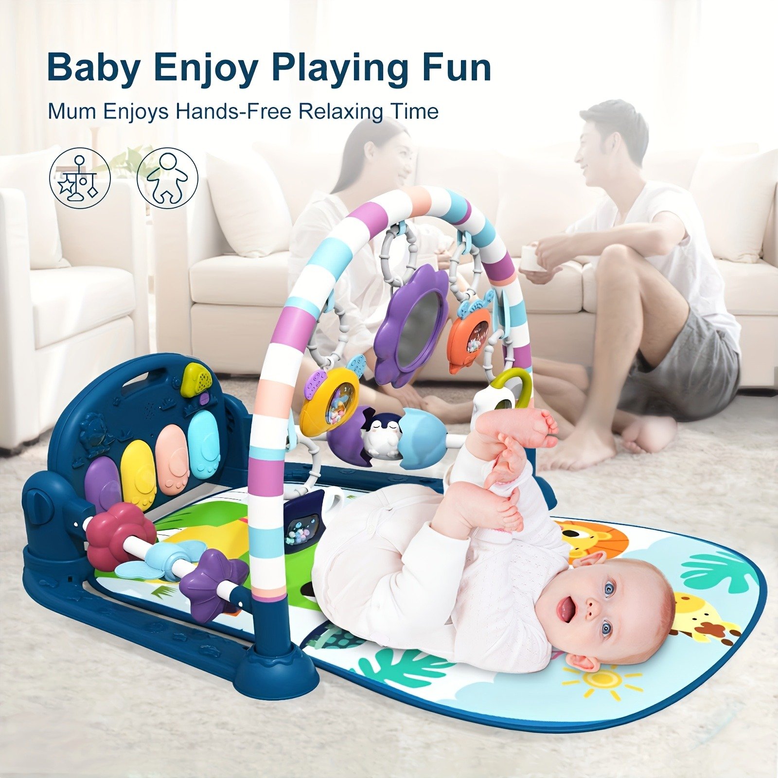Baby Play Mat Baby Gym, Funny Play Piano Tummy Time Baby Activity Mat With 5 Infant Sensory Baby Toys, Music And Lights Boy & Girl Gifts For Newborn Baby 0 To 3 6 9 12 Months (New Blue)