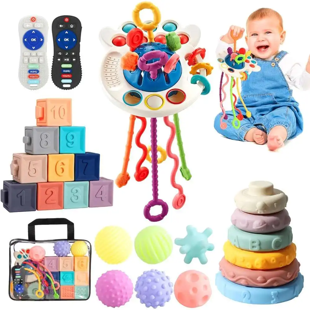 Baby toys 6 to 12 months, Montessori toys for 1 year old, Sensory Toys for Toddlers 1-3,Pull String Toys, Stacking Blocks