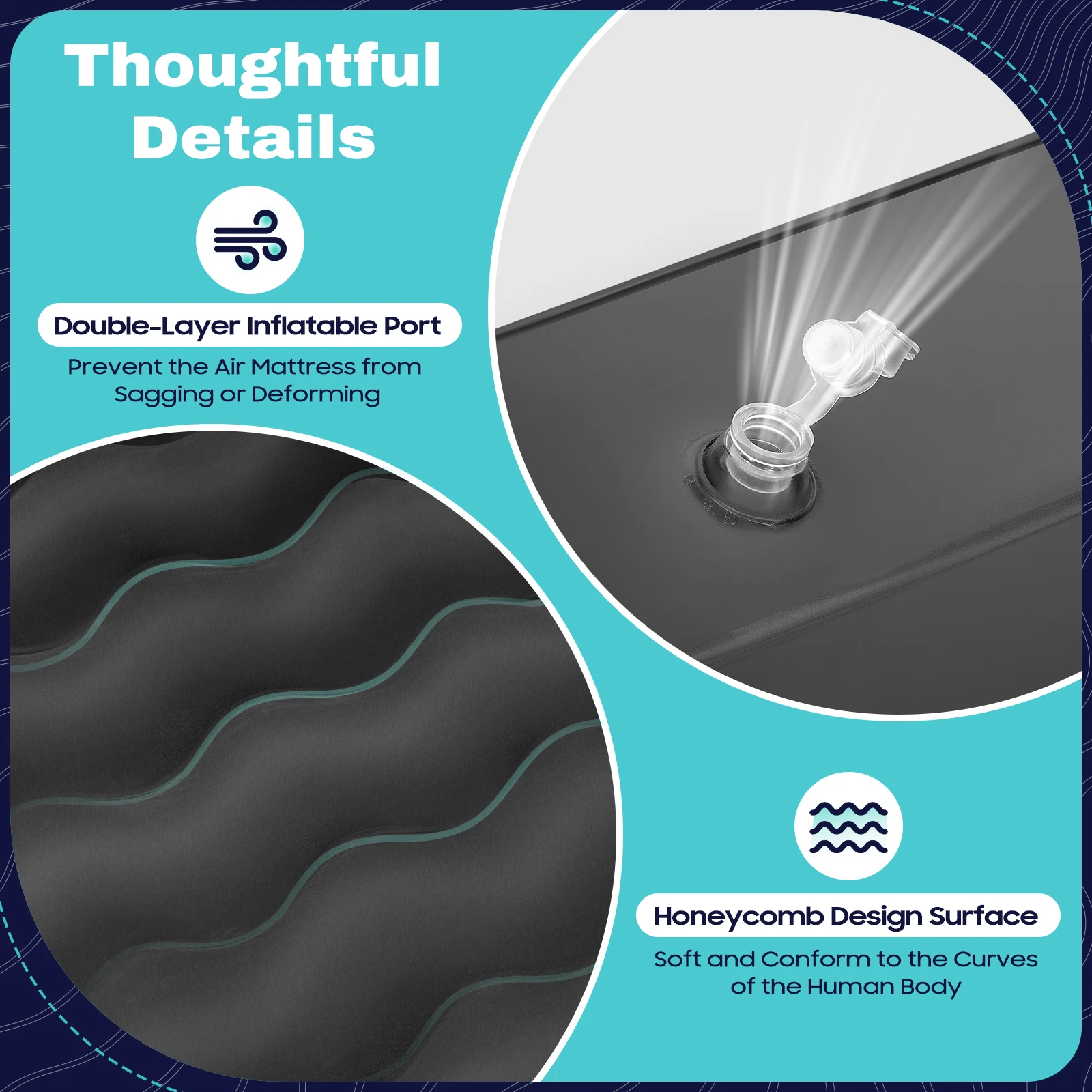 6.Pillows and other accessories can be inflated with small inflation nozzles.