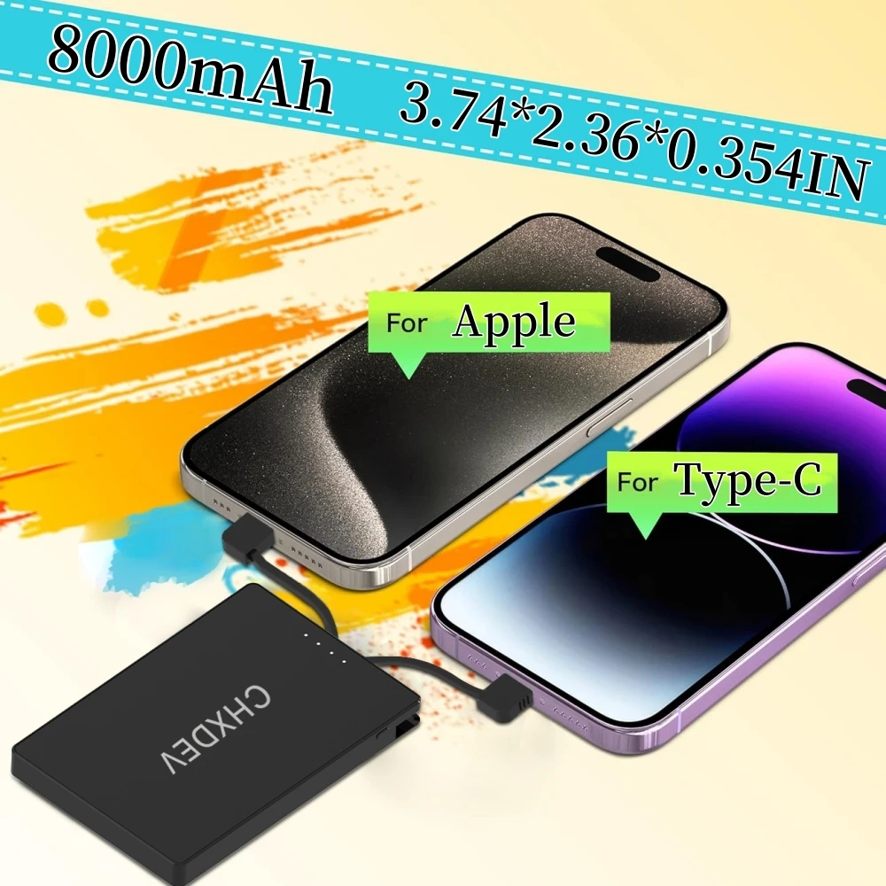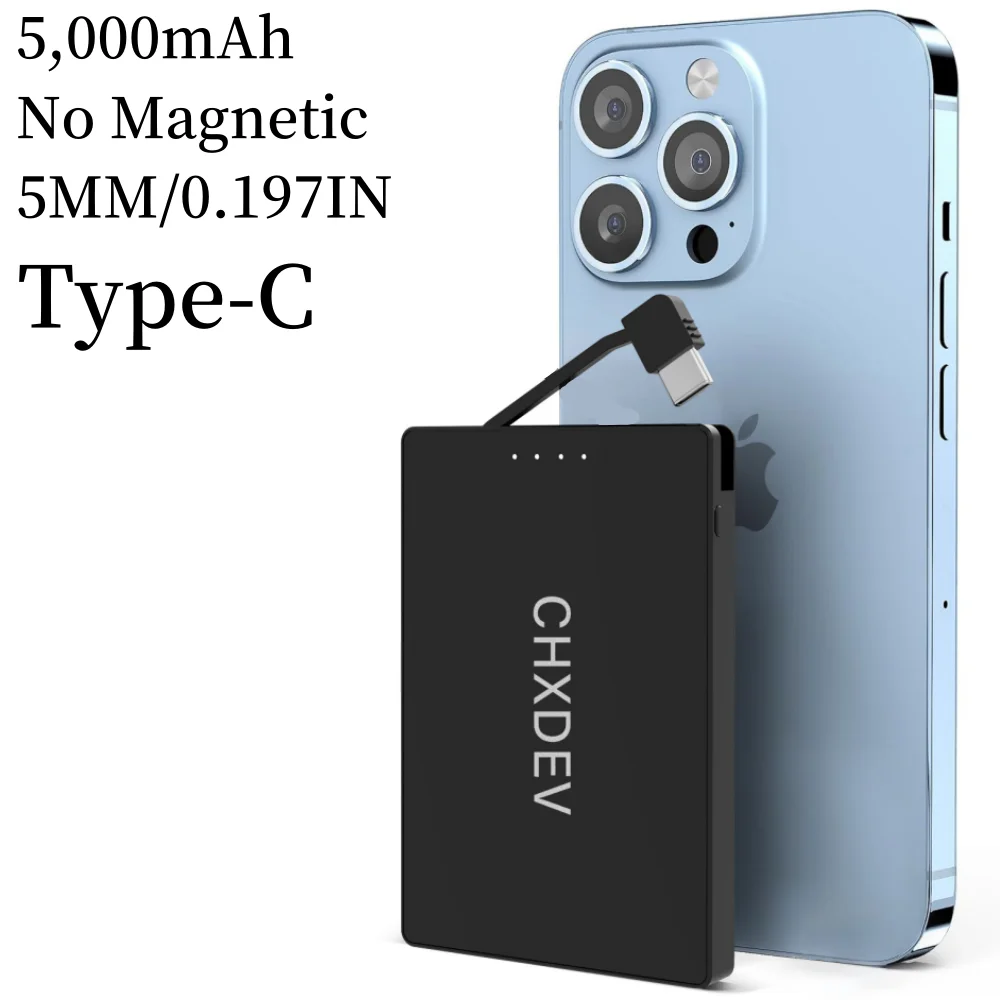 Stay powered up anywhere with the CHXDEV Mini Magnetic Power Bank, a sleek and ultra-thin 8000mAh portable charger designed for convenience and style. Built to fit in a card holder wallet, this mini power bank is perfect for travel, work, or daily use.