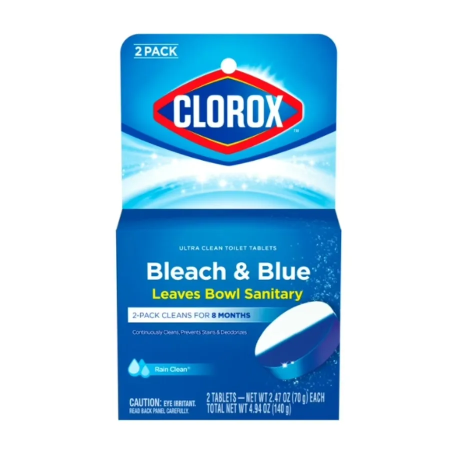 Clorox Bleach and Blue Toilet Bowl Cleaner Tablets Rain Clean 2 Count
