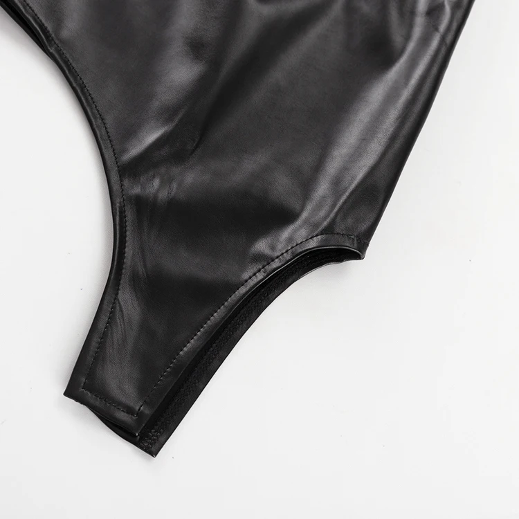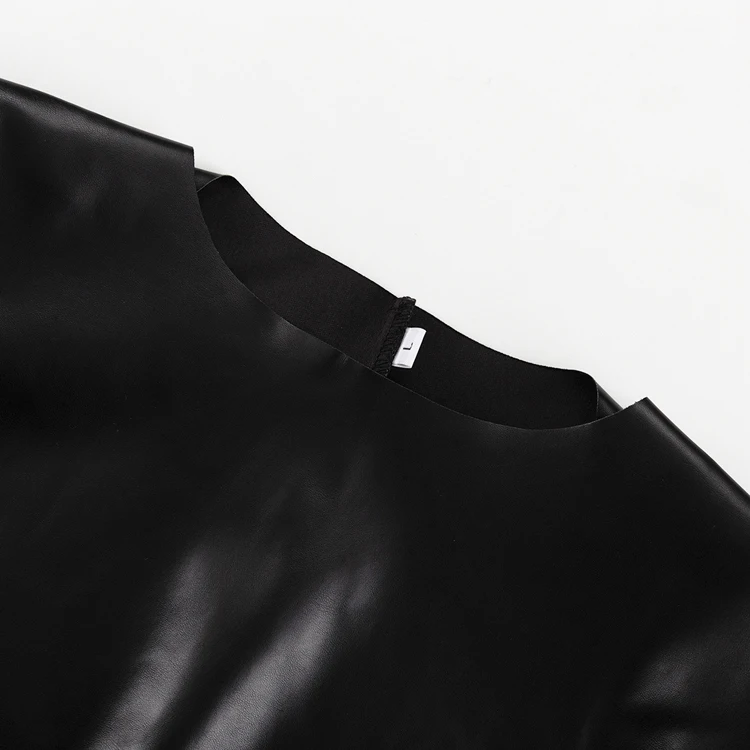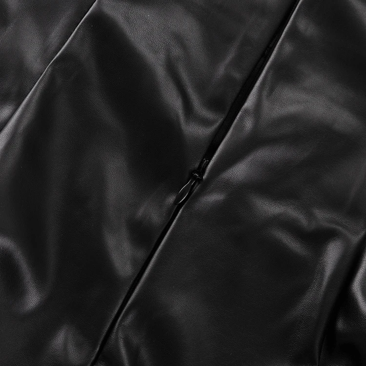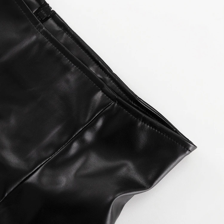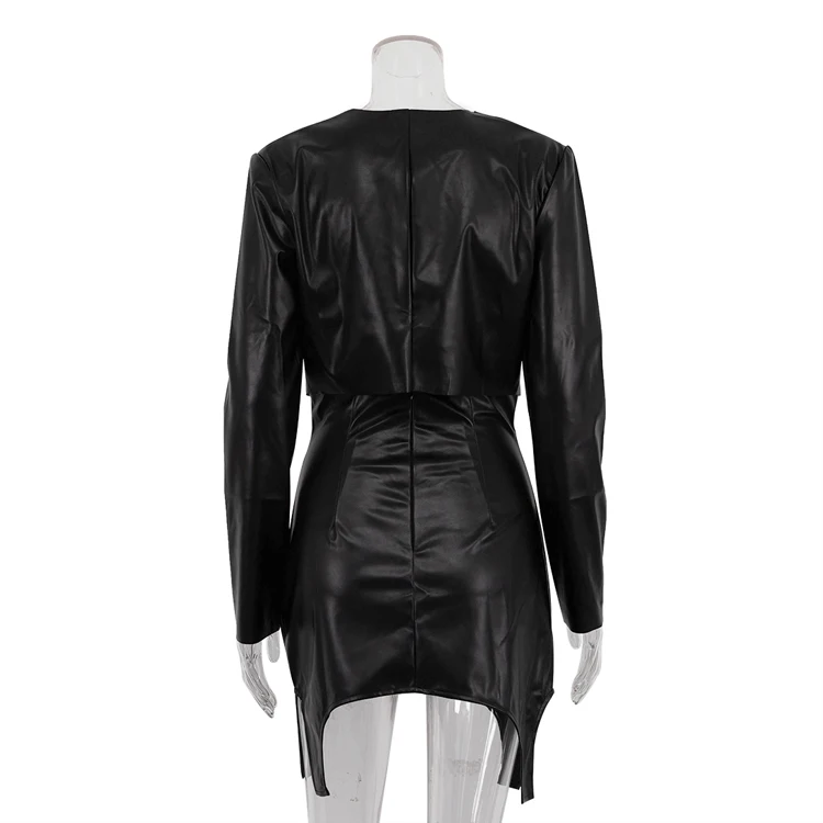 Cut-Out Fashion PU Outfits Black Leather Crop Top And High Waist Mini Short Skirt Women 2 Piece Sets Ensemble Jupe Et Haut Femme