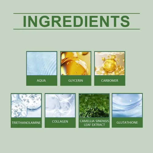 | Composition | Collagen, green tea extract, glutathione |