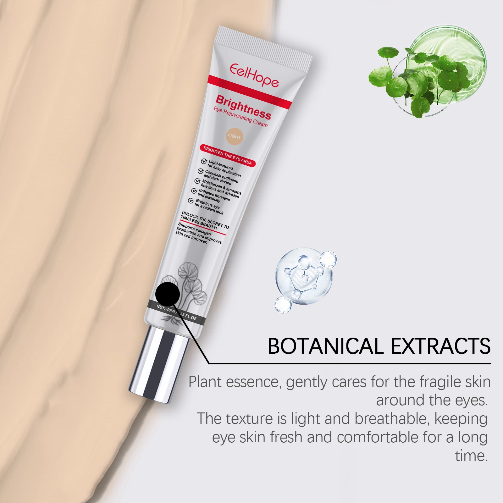 3. Deeply nourishes and forms a protective film to effectively lock in moisture, making the skin around the eyes long-lasting supple and supple.