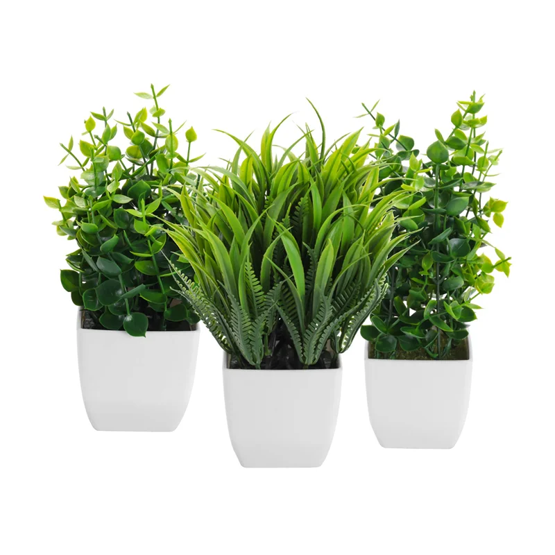 Safe & Durable Material: Fake plants are made of high-quality plastic material, easy to maintain. Comes with white plastic pot, durable and not fragile. With realistic appearance, straight and lush, the pot is covered with a layer of artificial green grass, full of the feeling of nature.