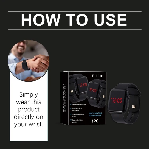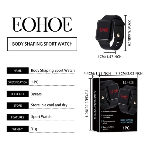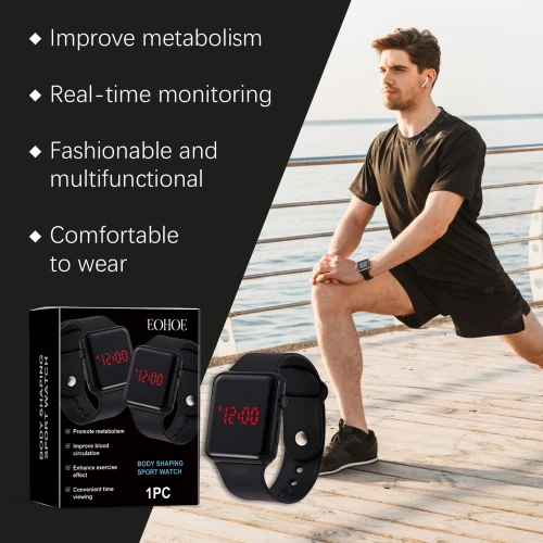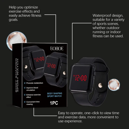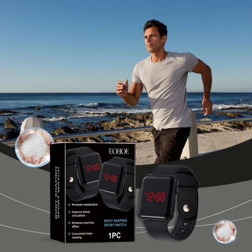 Our body-shaping sports watches contain plastic, silicone. It can boost metabolism and fat burning, improve exercise results, and make it easy for you to have a slim and toned body. The way to use it is simple: simply wear the product directly on your wrist. And you can easily check the time, keep track of progress at any time, and maintain efficient exercise.