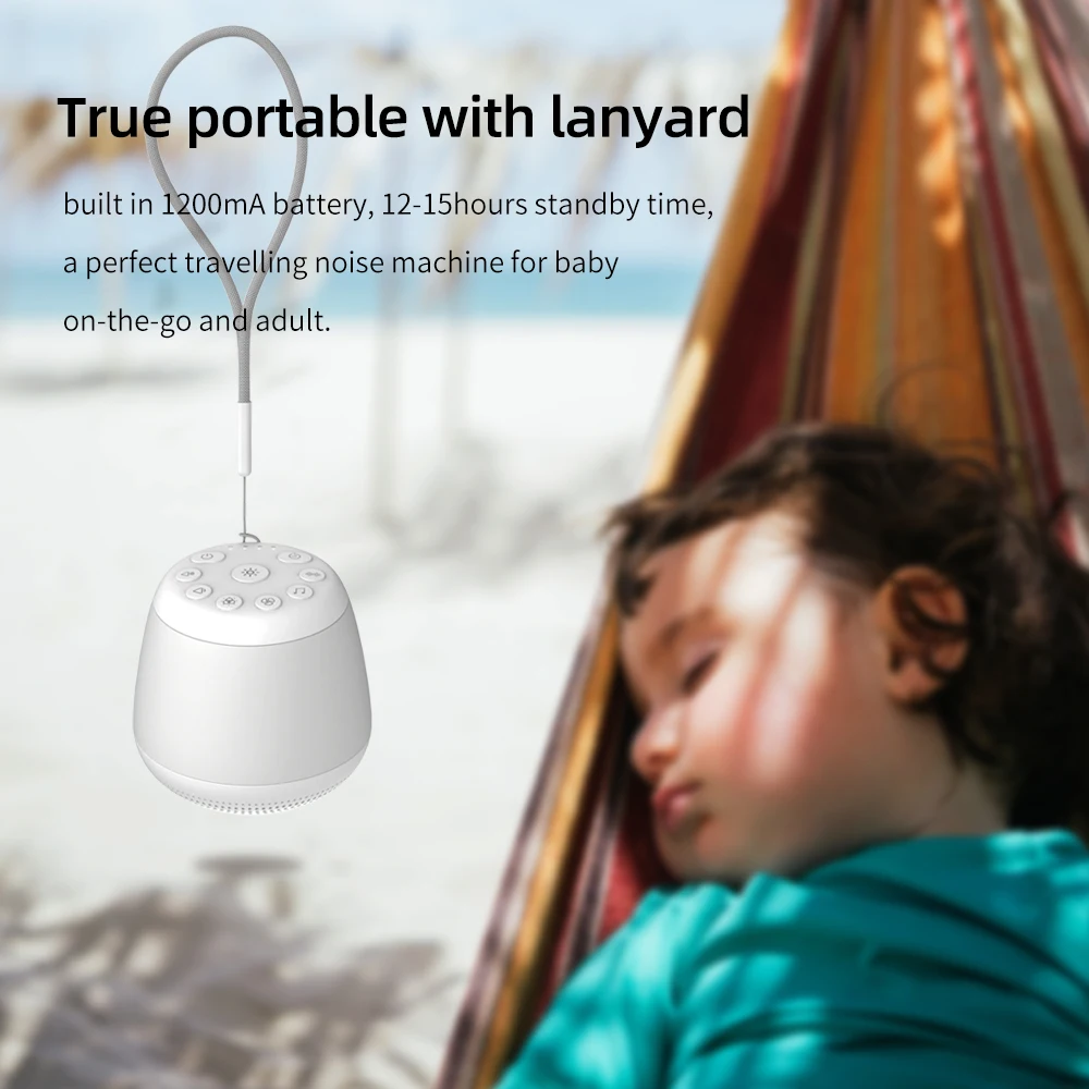 * True portable with lanyard – built in 1200mA battery, 12-15hours standby time, a perfect travelling noise machine for baby on-the-go and adult.
