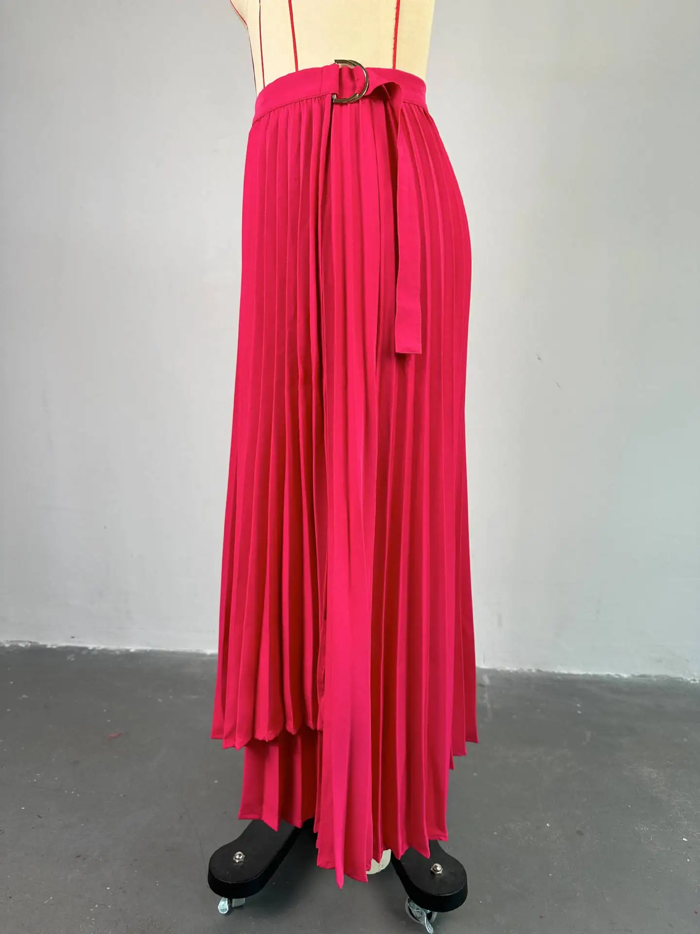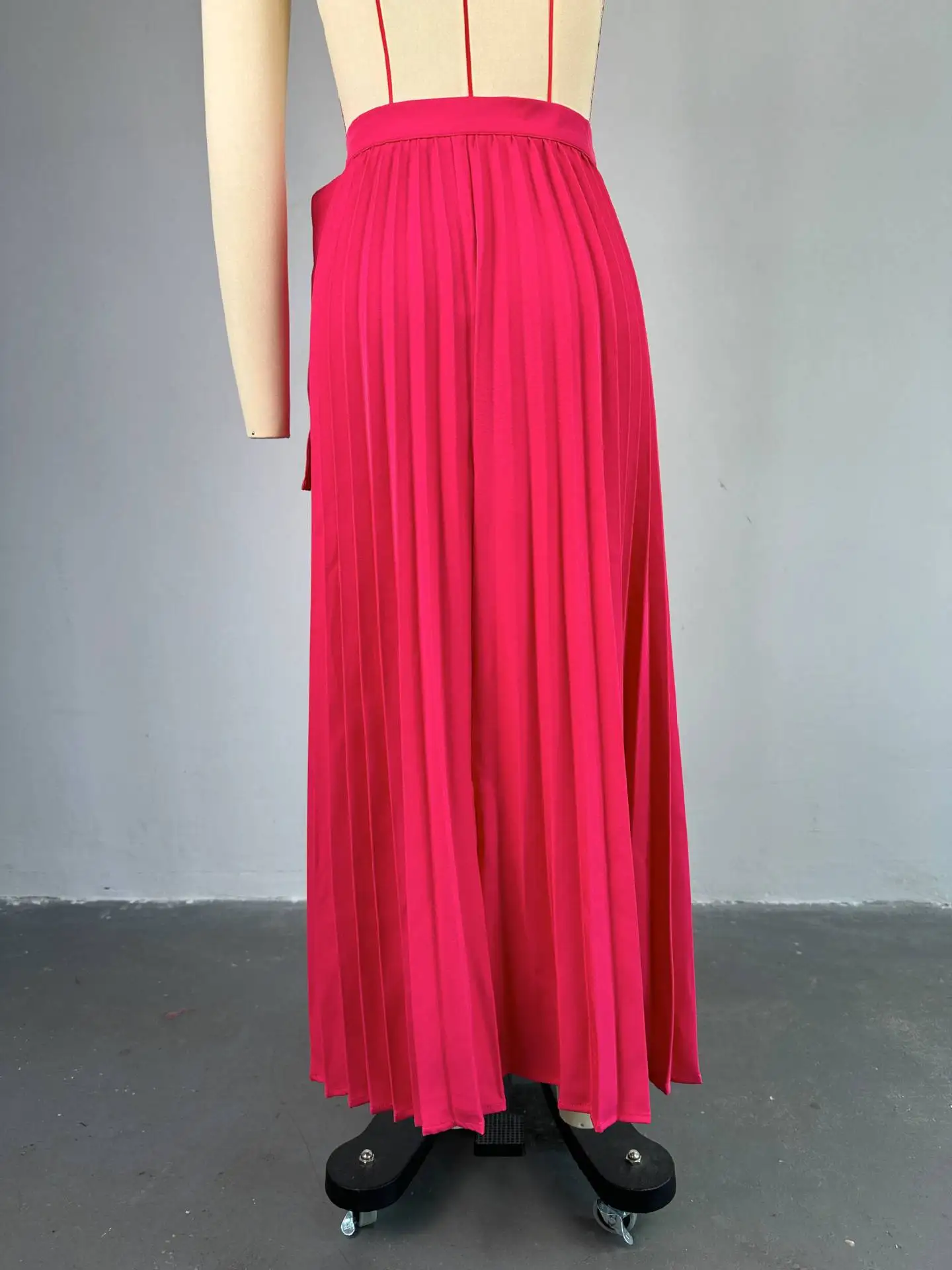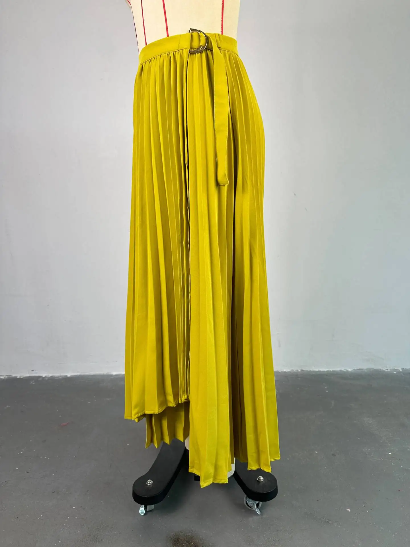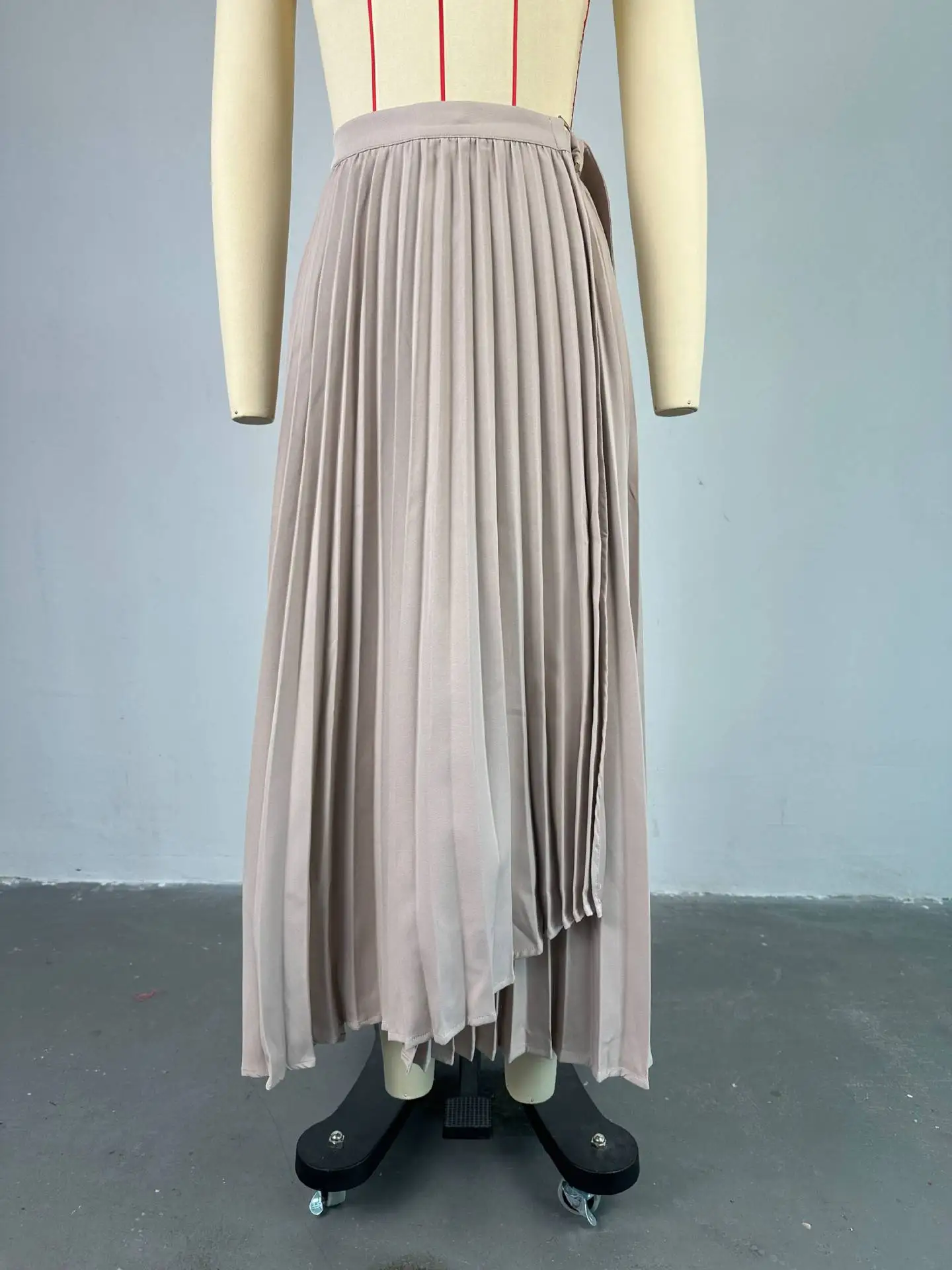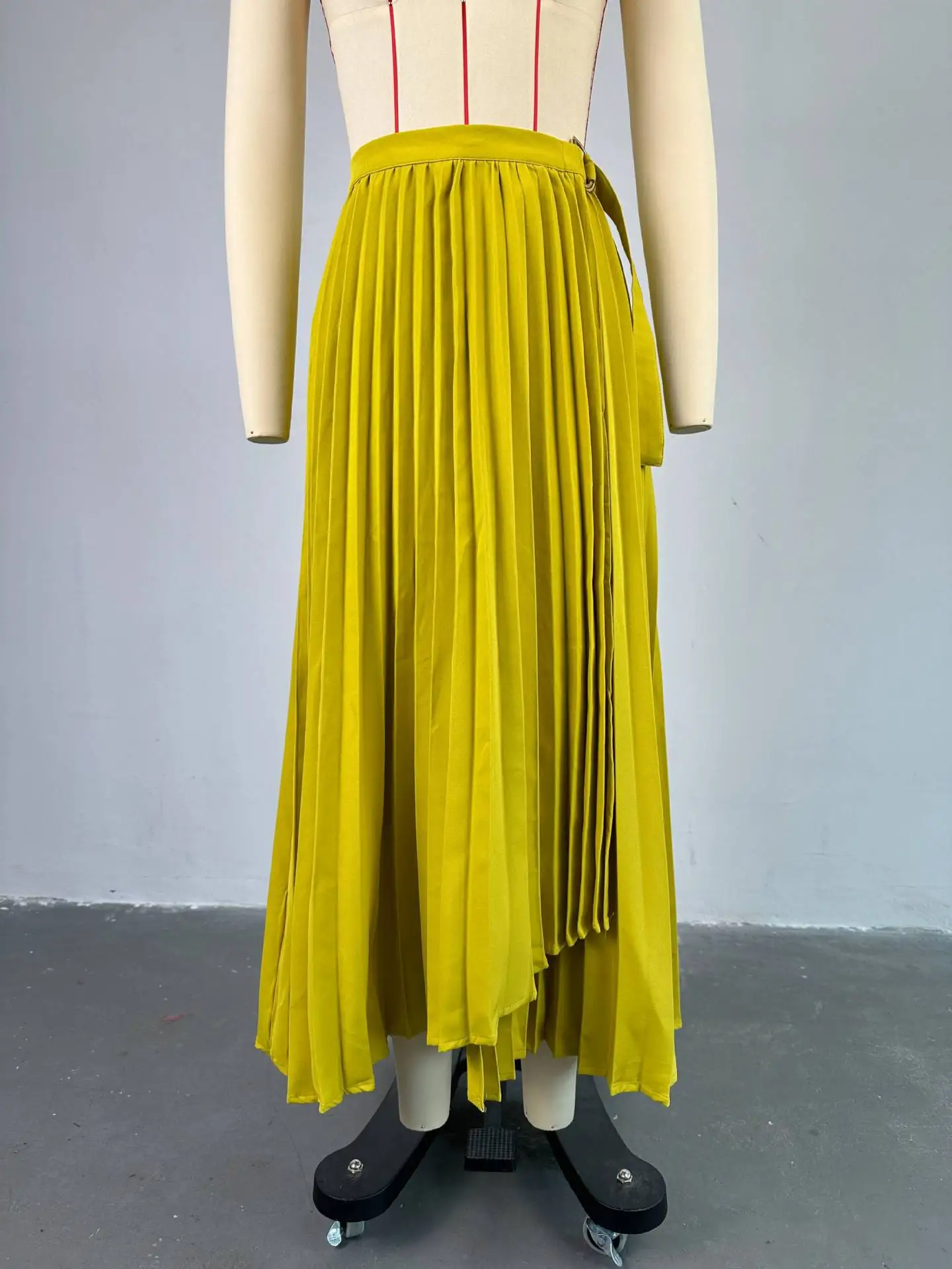HK7517 Latest Design Summer Skirt Women High Waist Slim Lace Up Irregular Mid Length A-line Pleated Skirts For Women