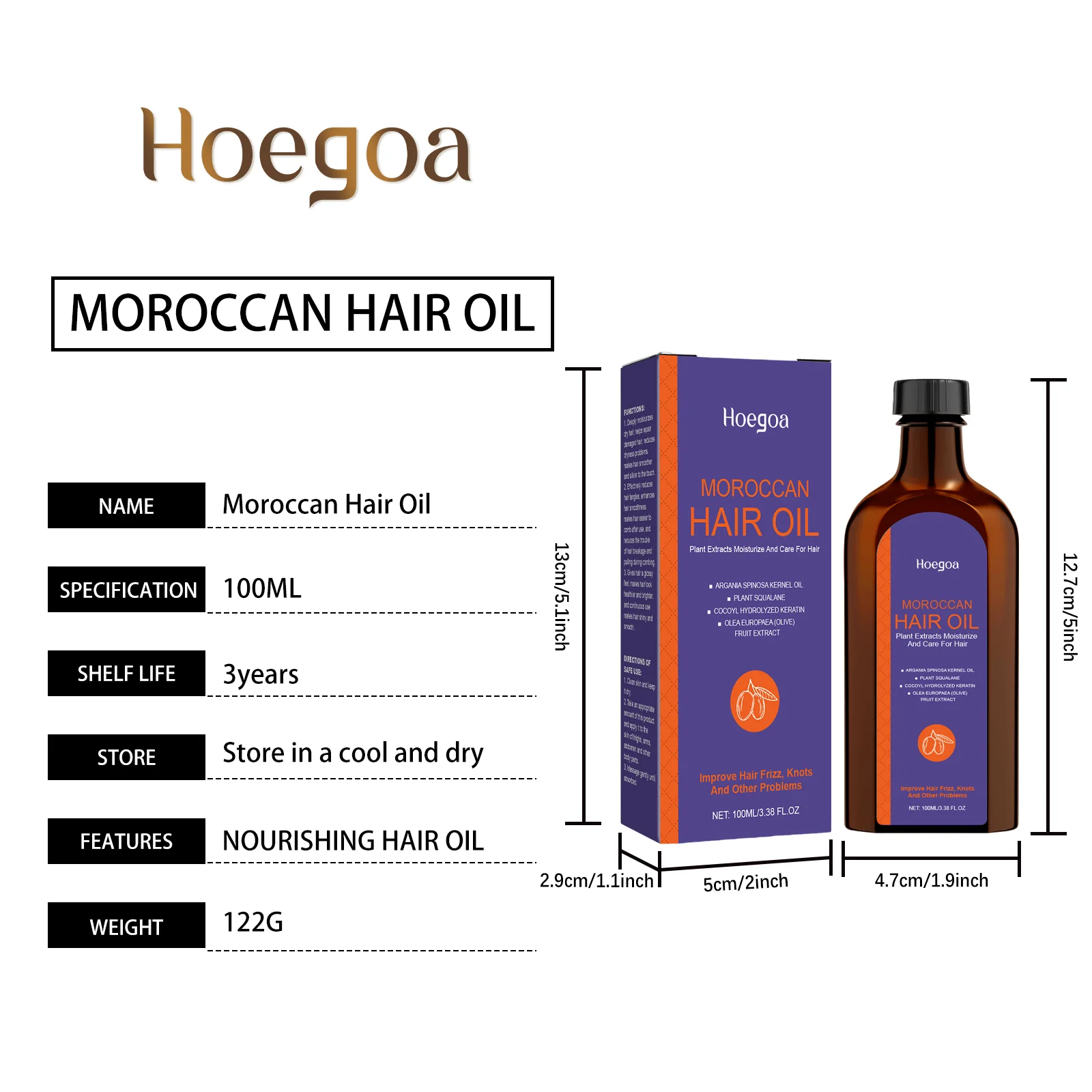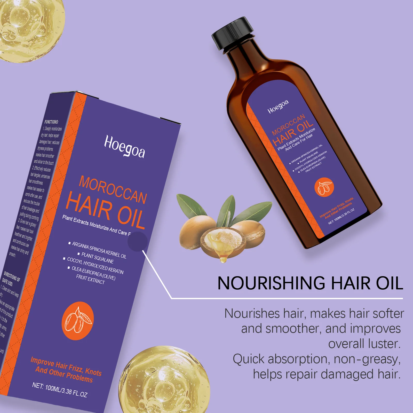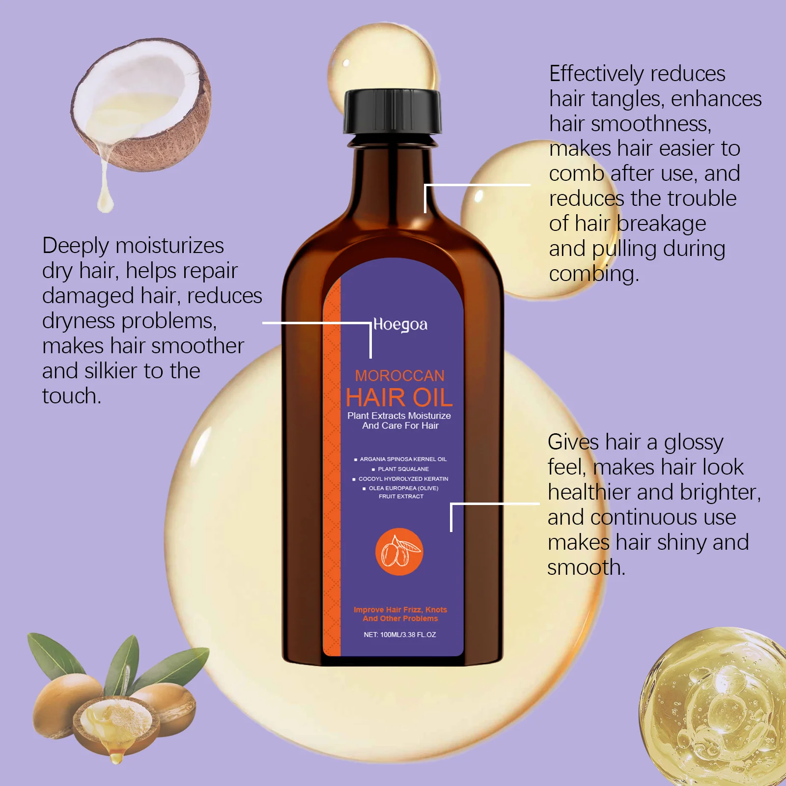 Hoegoa 100ml Moroccan Hair Care Essential Oil Repair Damage Hair Softening Thicken Oil Control Moisturizing Fluffy Hair Oil