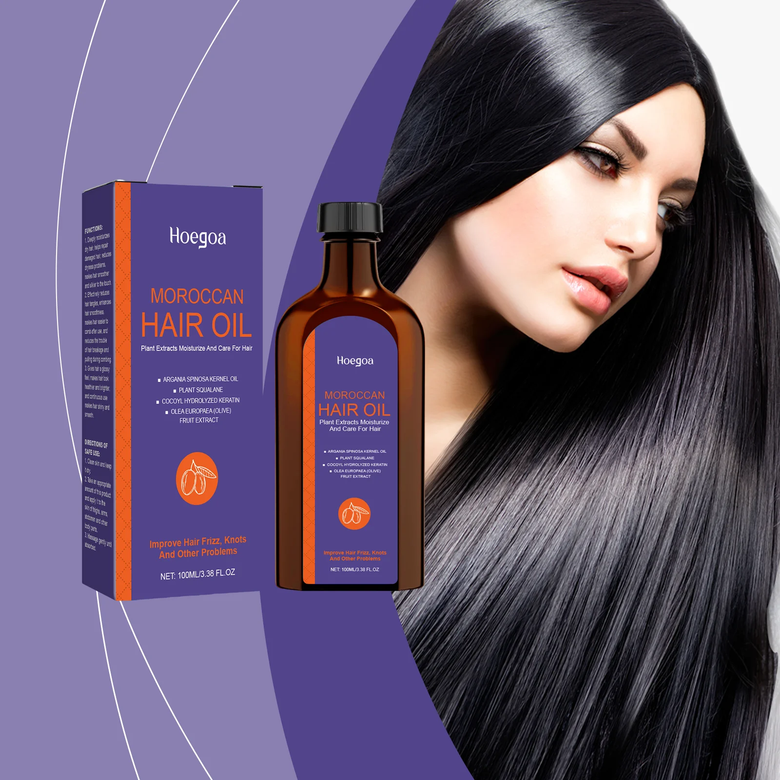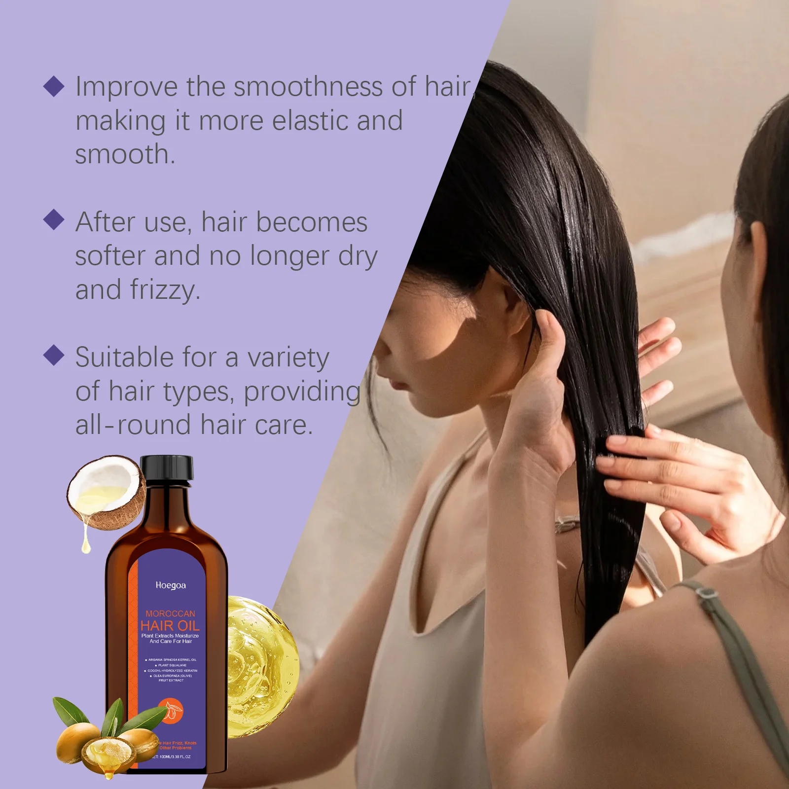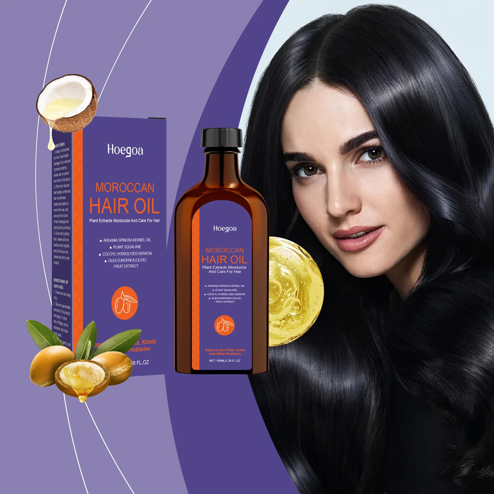Hoegoa 100ml Moroccan Hair Care Essential Oil Repair Damage Hair Softening Thicken Oil Control Moisturizing Fluffy Hair Oil