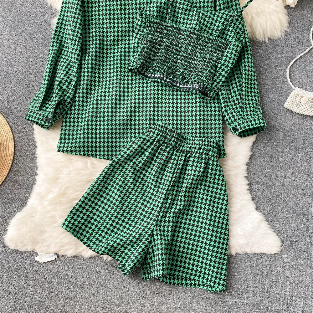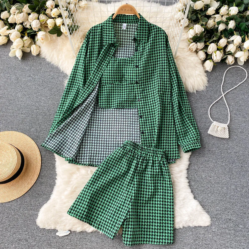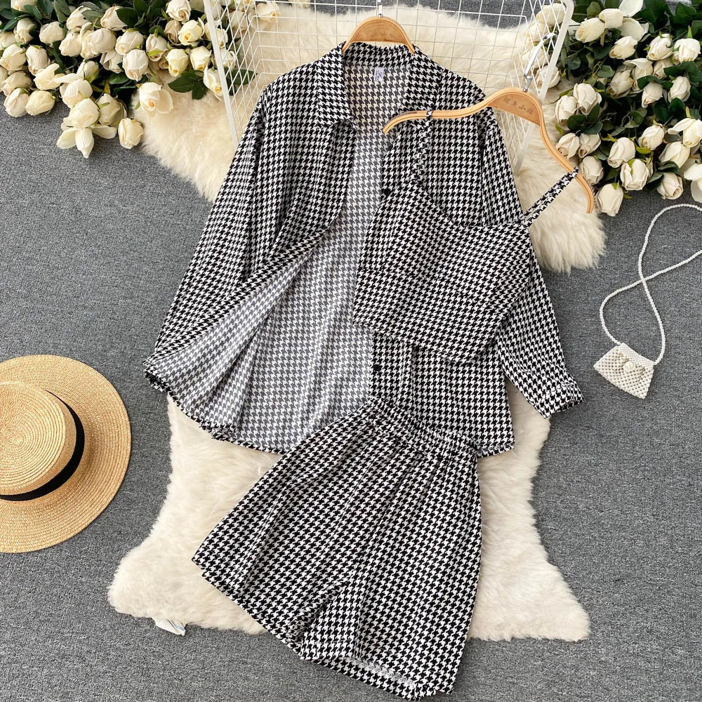 Hot Selling Women Shirt Design 3 Pieces Set 2022 Girl Long Puff Sleeve Tops And Shorts Set