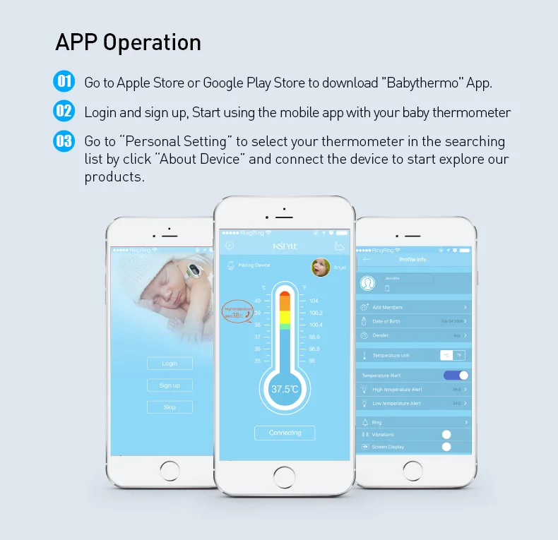 J-Style 2020 Baby Fever Detecting Monitor App Support Thermometer Digital Arm Band