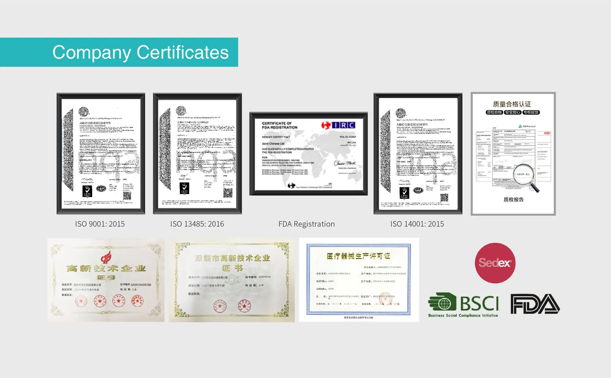 8) Medical approved factory by ISO9001, ISO13485, ISO14001, FDA, Sedex, BSCI, etc.