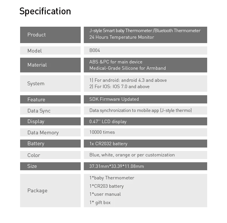 J-Style B004 Baby Fever Detecting Monitor App Support Thermometer Digital Arm Band