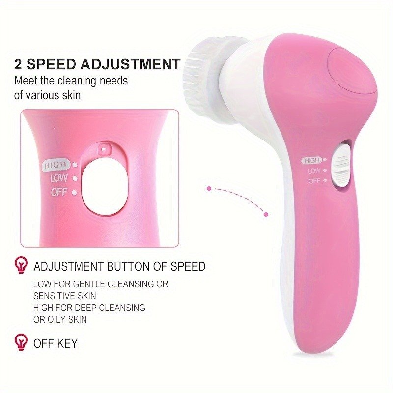 JUMPERKITS 7-in-1 Electric Facial Cleanser & Massager – Multi-Headed Light Beige Scrubber with Vibration, Pore Cleaning, and Curling Brushes, 36V Safe for Face & Body, Portable Skincare Tool for Deep Cleansing & Beauty, Facial Light Beige Scrubber, Sleek