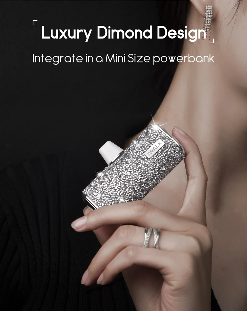 * 4500mAh Battery Capacity; * Powerful with New Battery; * Mini Size & Pocket Friendly; * Built-in Plug No Need Cable; * Delicate Shining Diamond Design; * Nice Gift Box Package, Great Option for Gift