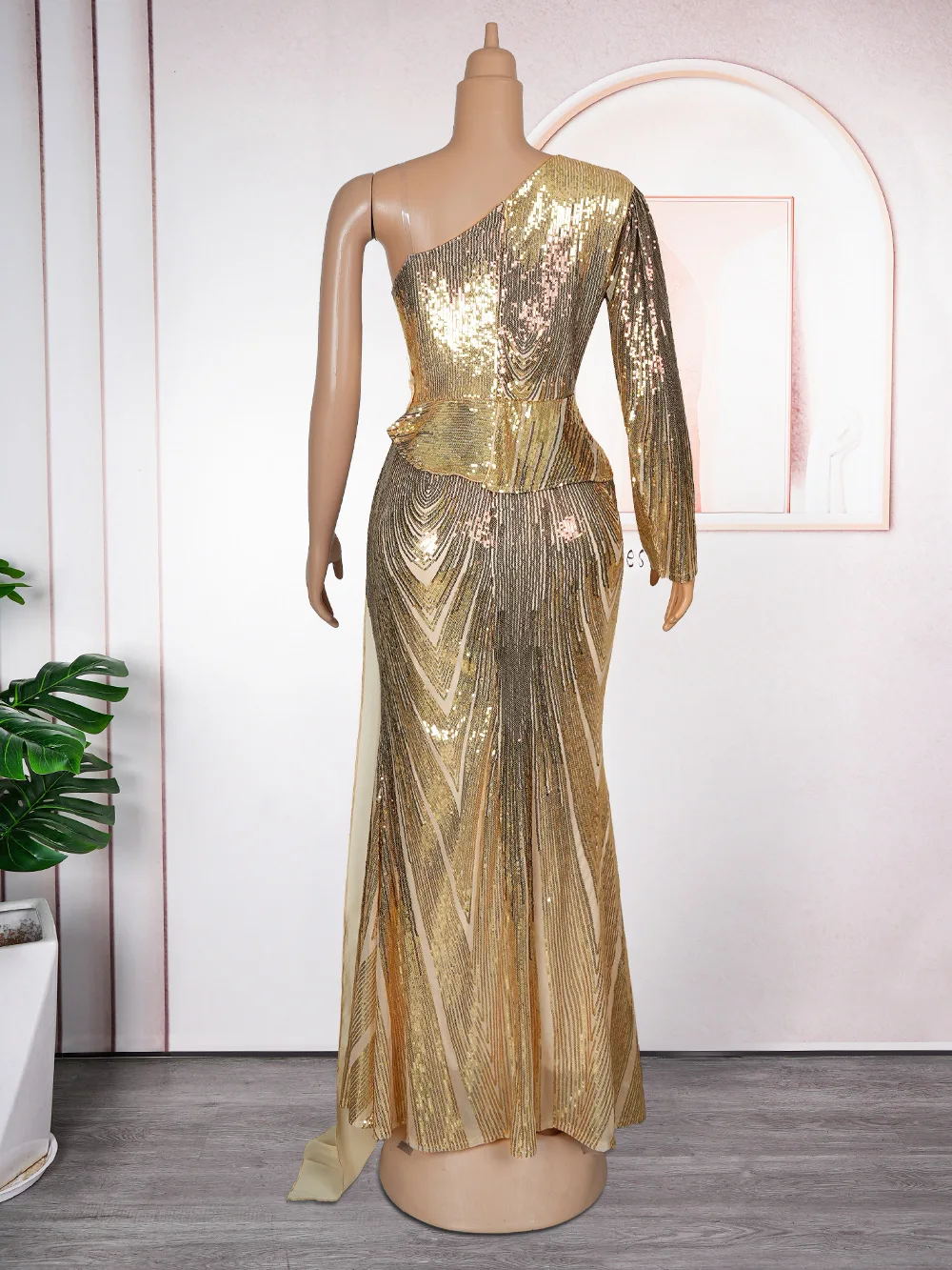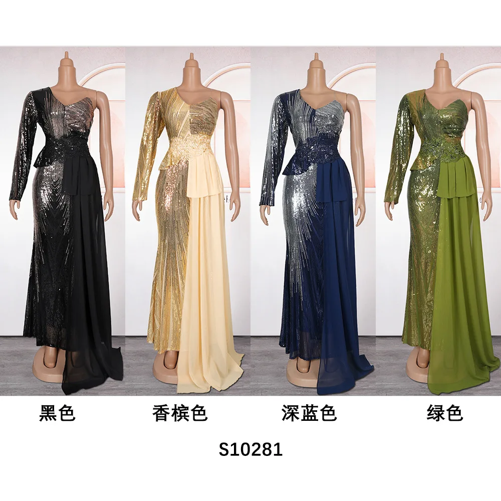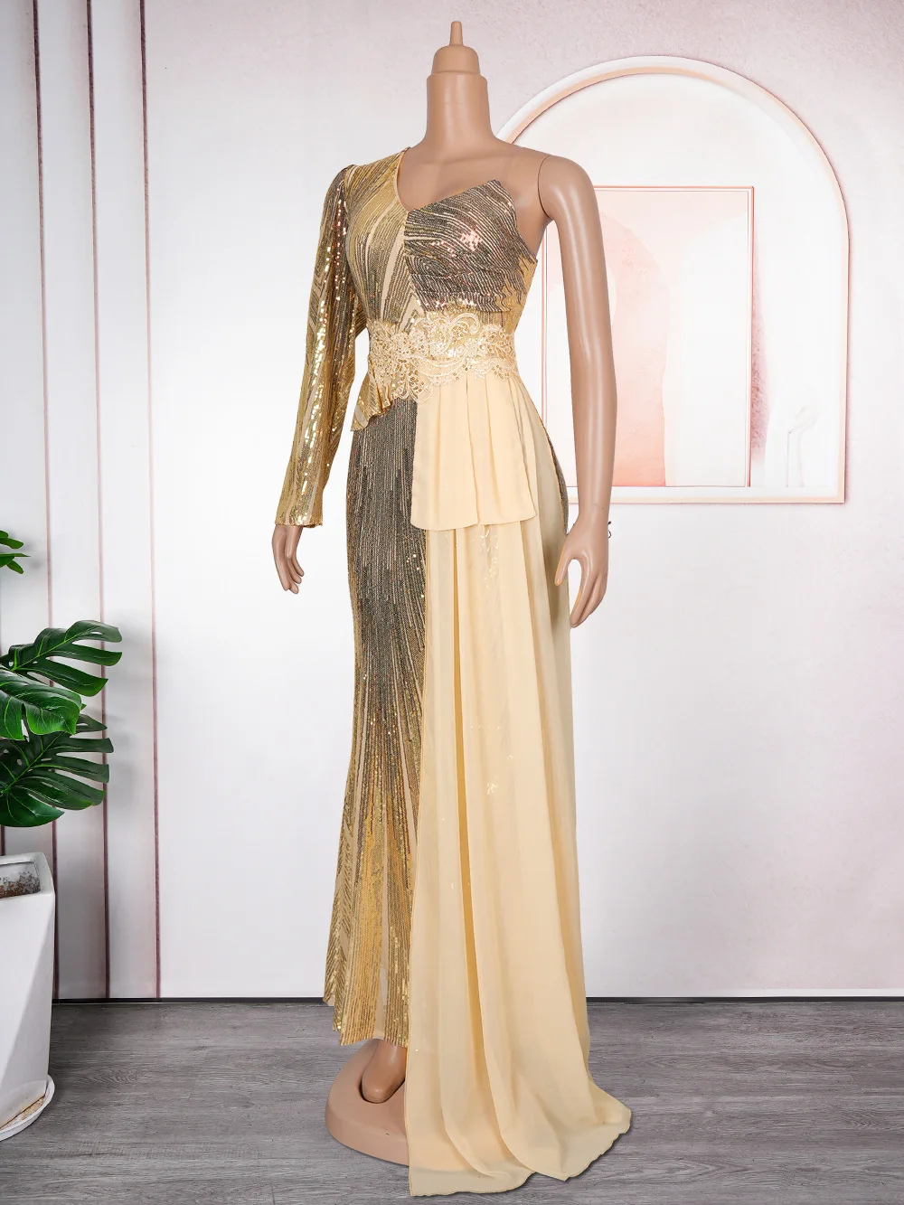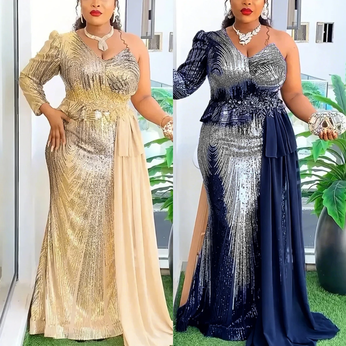 Luxury Gowns for Women Evening Dresses Off Shoulder Long Sleeve Gradient Sequin Long Dress Women Christmas Party Dresses
