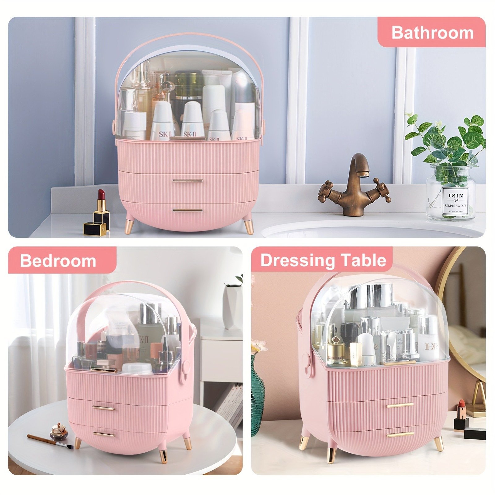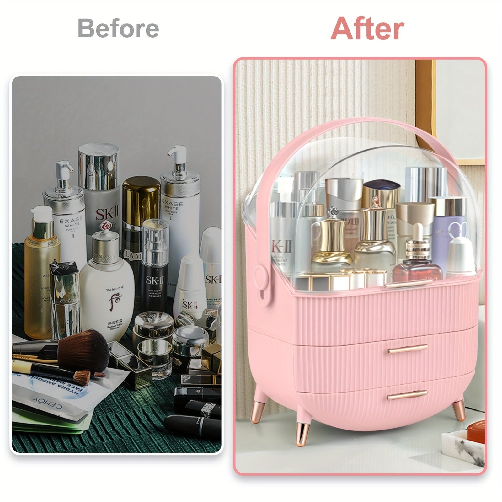 Make up Organizers and Storage, Makeup Organizer for Vanity, Cosmetics Skincare Organizers with Lid and Drawers, Cosmetic Display Cases for Countertop, Bathroom, Ideal Gifts for Women