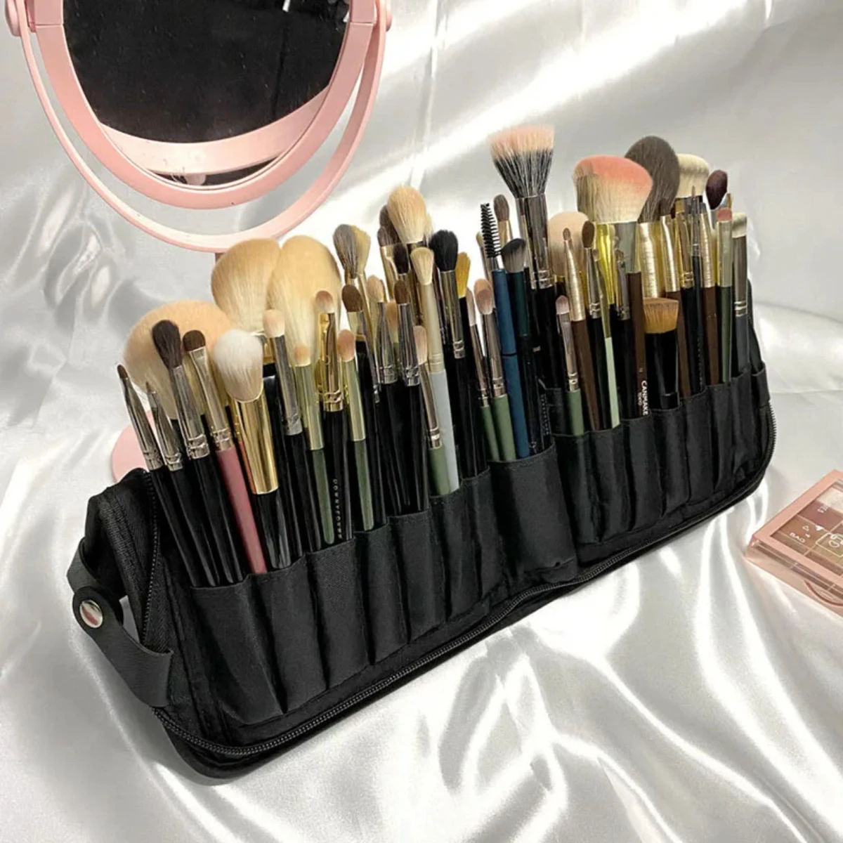 【Super Large Capacity】This makeup brush case has 29 pockets, each pocket can hold 1 large powder brush and 2-3 small eyeshadow brushes.