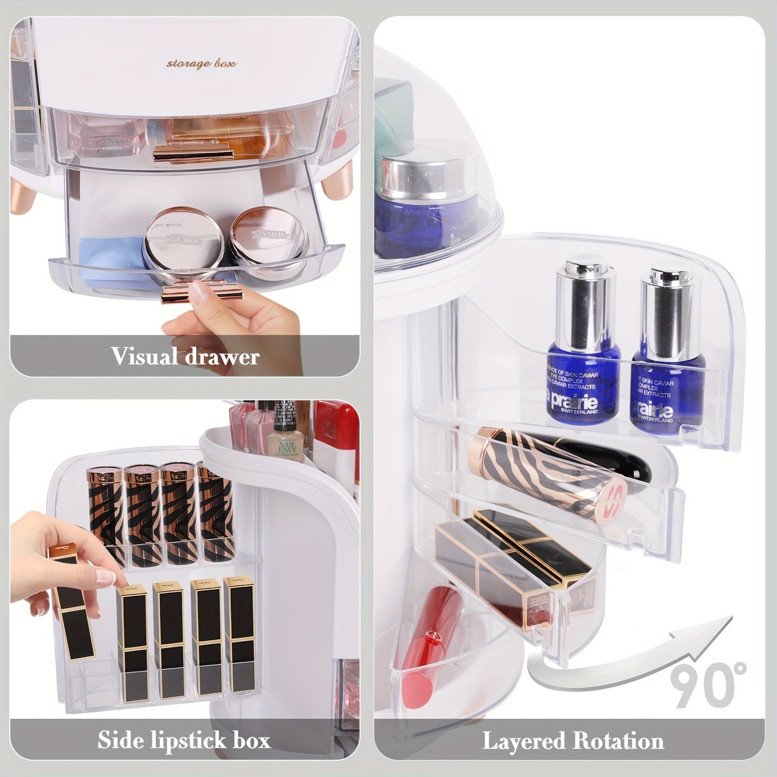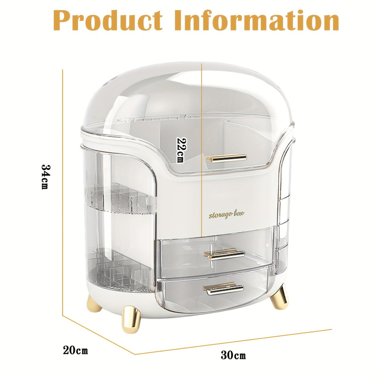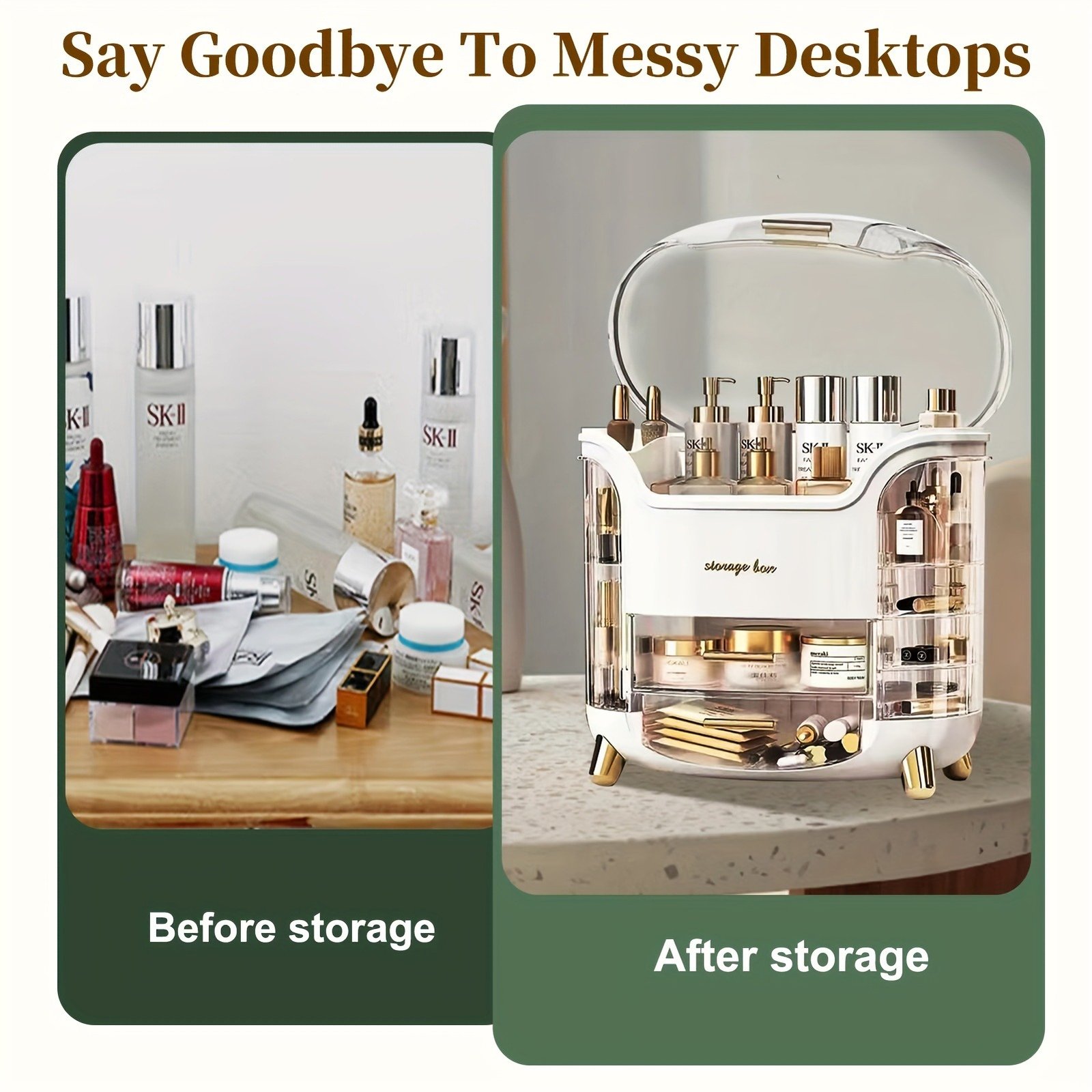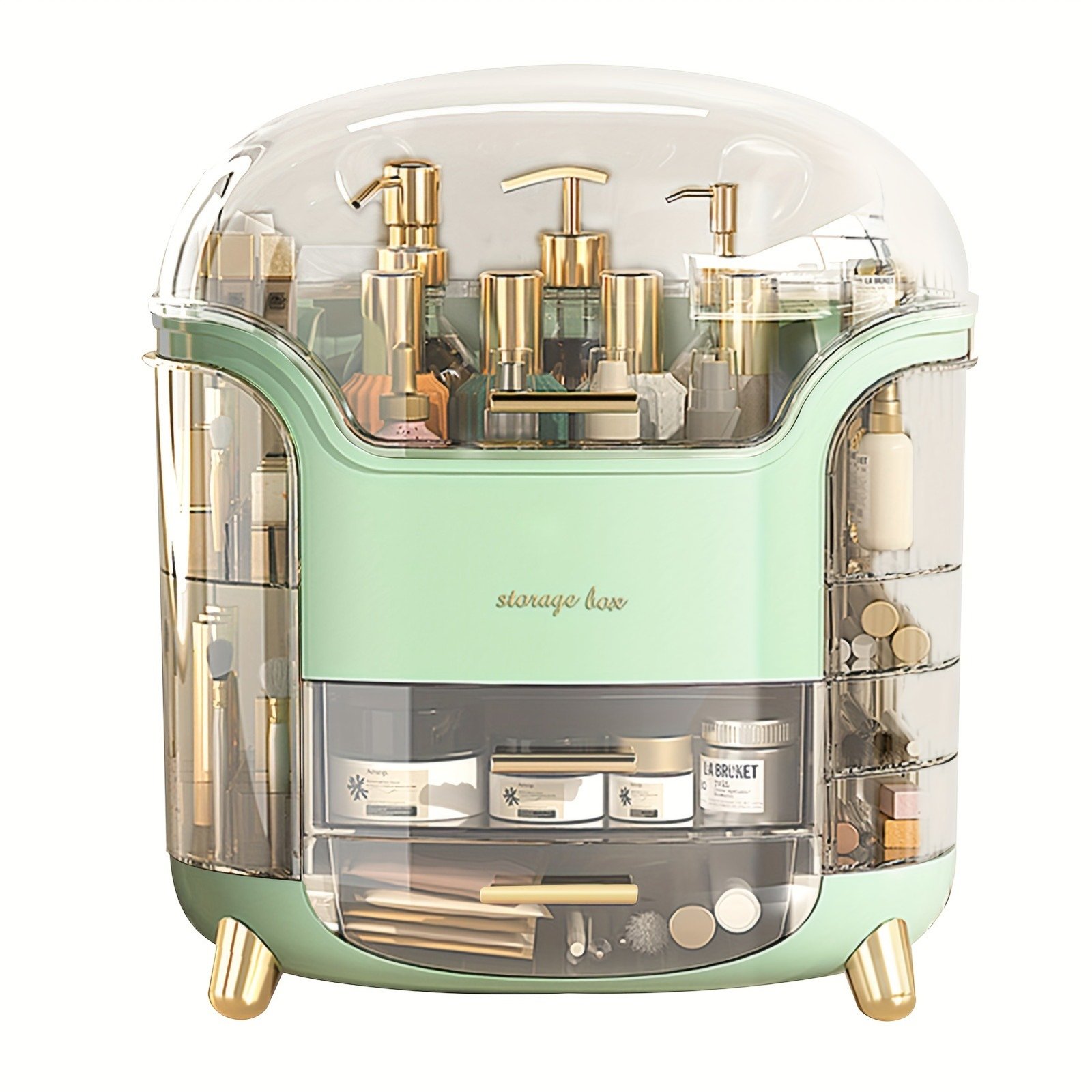 A makeup organizer that is waterproof and dust-proof. The lid of this skincare organizer protects your makeup from dust and moisture, while the elevated base stops water from getting in, keeping your cosmetics clean. You can confidently place this beauty organizer on your bathroom counter without worrying about contamination.