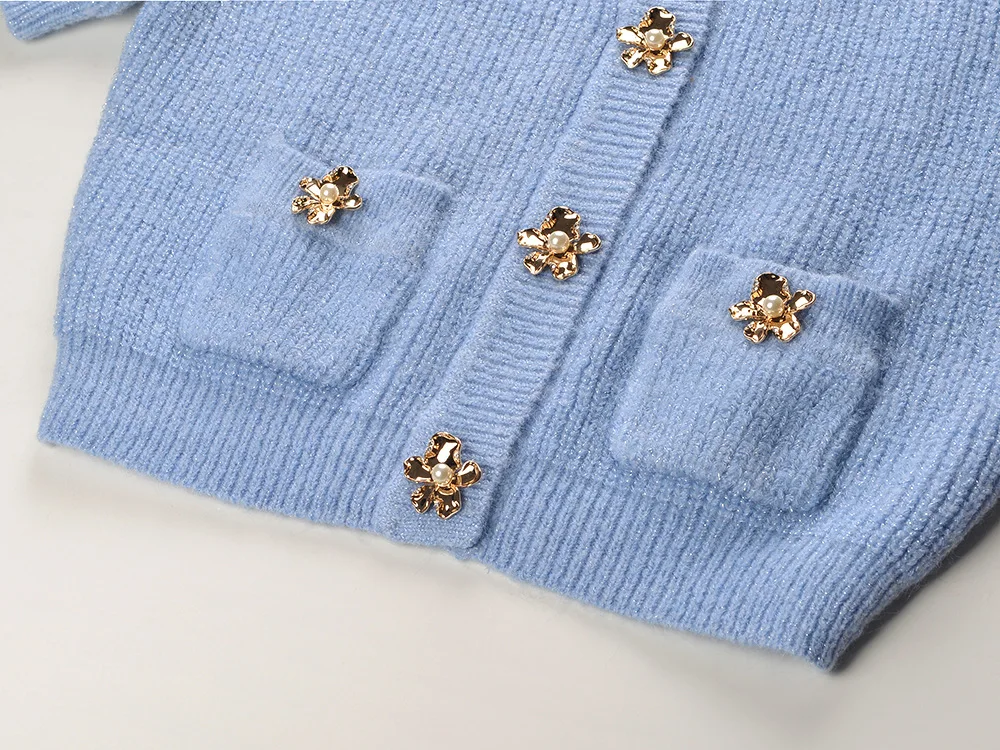 Be the first to review “Newest 2024 French Style Lady Solid Suit O-neck Short Sleeve Single-breasted Cardigan Long Skirt Women Flowers Button Knit 2Pcs”