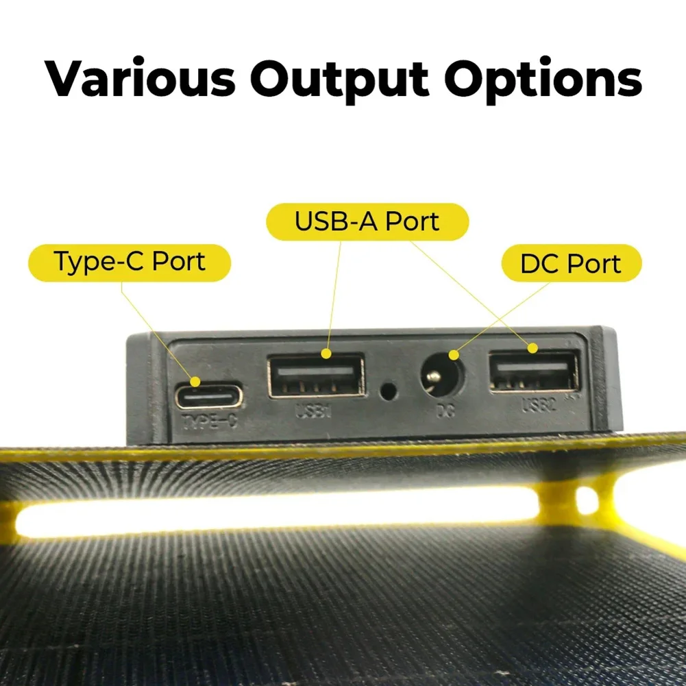 5.Wide Compatibility & Application: Equipped with four output ports (1xUSB-C, 1xDC, 2xUSB-A), the solar panel chargers can charge multiple devices simultaneously (though it’s not recommended to use DC and USB ports together to avoid slow charging). Suitable for smartphones, tablets, laptops, lights, portable power banks, switches, cameras, speakers, and more 5V/18V rechargeable devices. Perfect for outdoor camping, hiking, cycling, and as an emergency power source. Note: The solar panel charger does not store electricity and cannot be used at night.